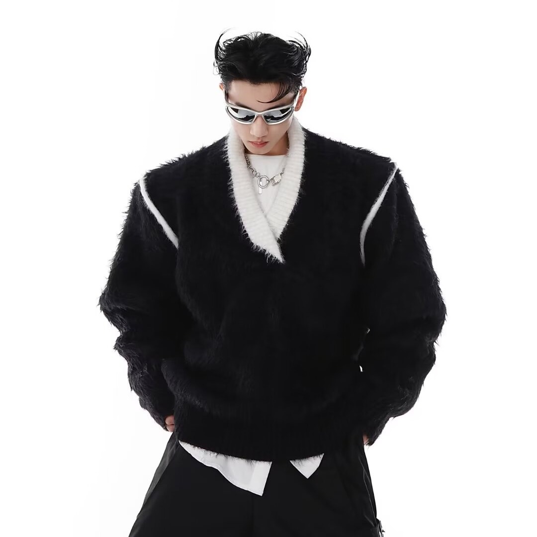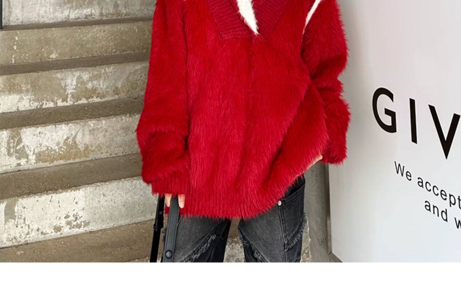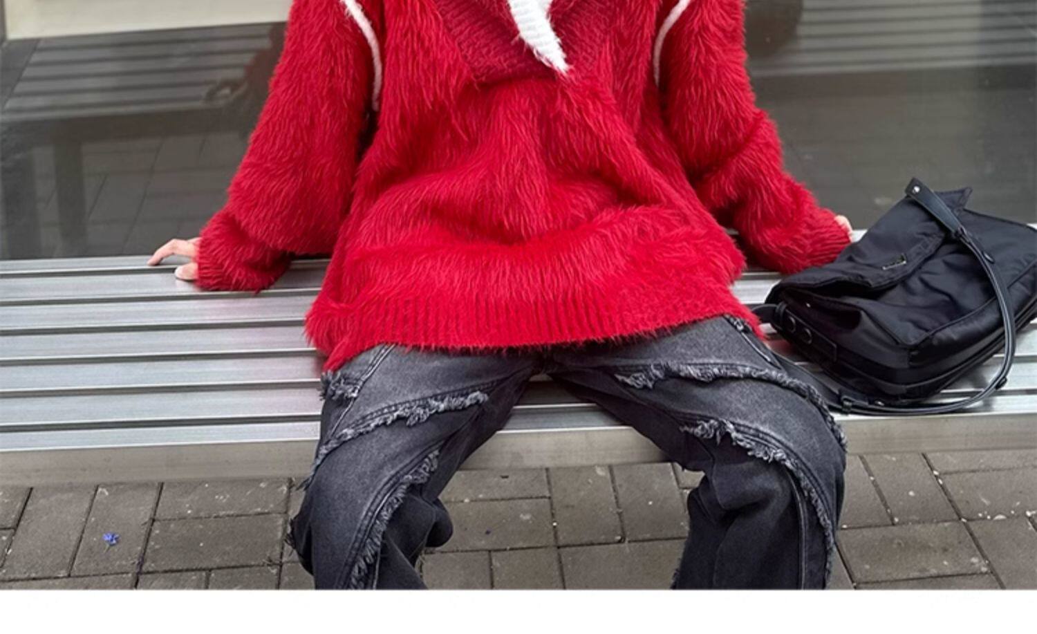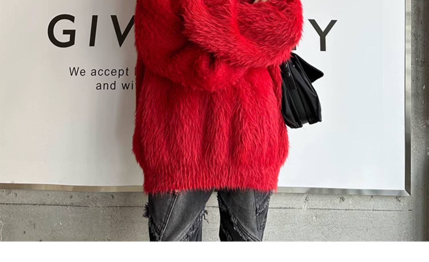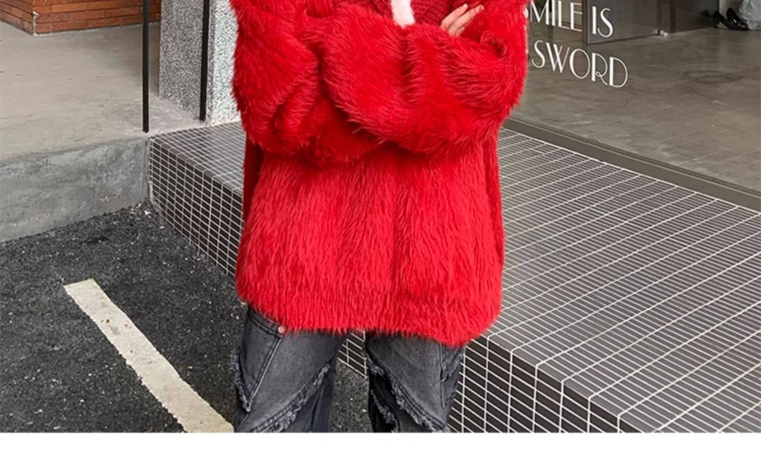 마우 머리 빨간 스웨터 남자 크리스마스 착용 가운 니트웨어 게으른 스타일 커플의 하이 엔드 겨울 코트