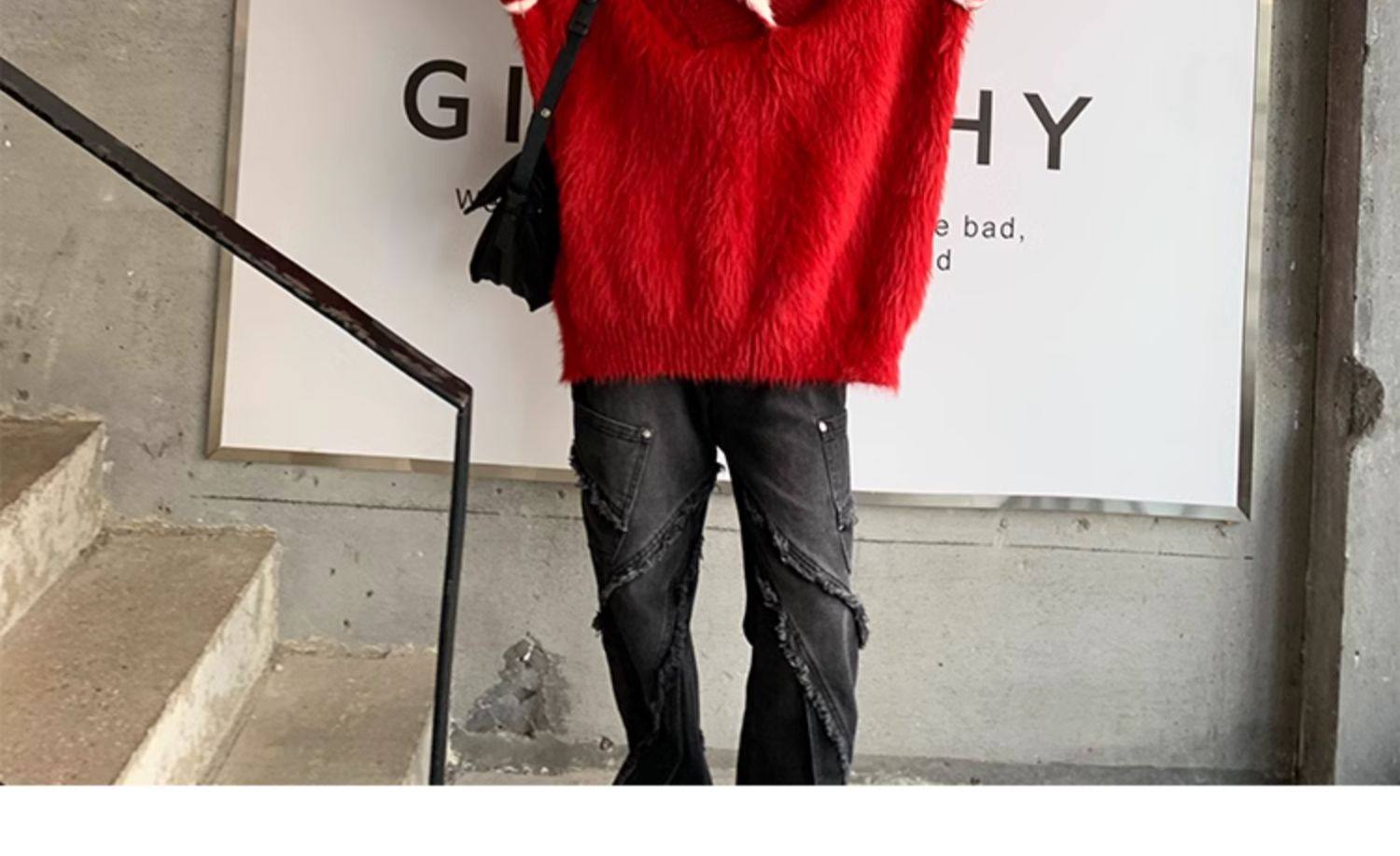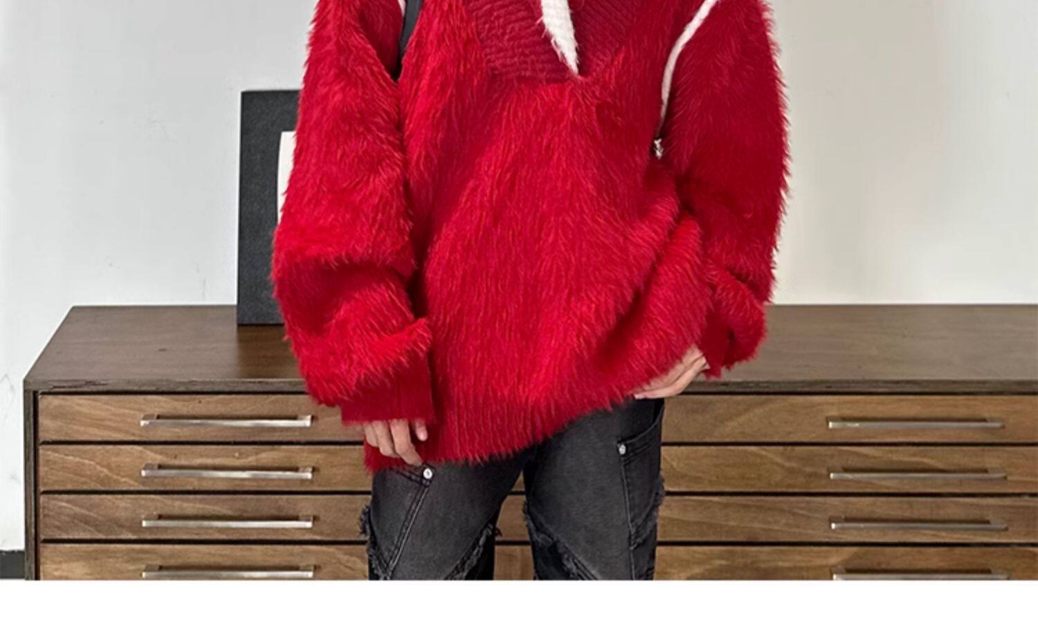 마우 머리 빨간 스웨터 남자 크리스마스 착용 가운 니트웨어 게으른 스타일 커플의 하이 엔드 겨울 코트스토어 가기
