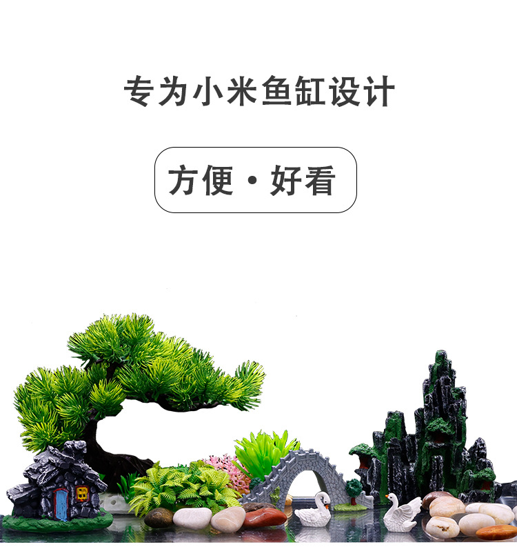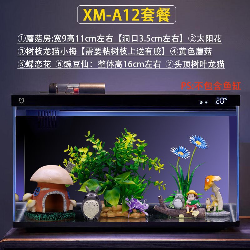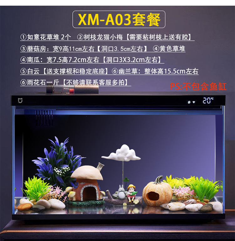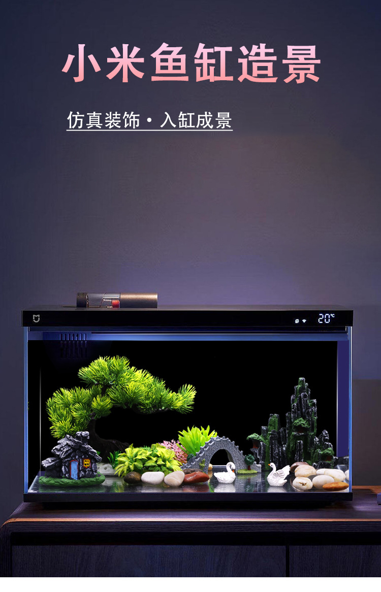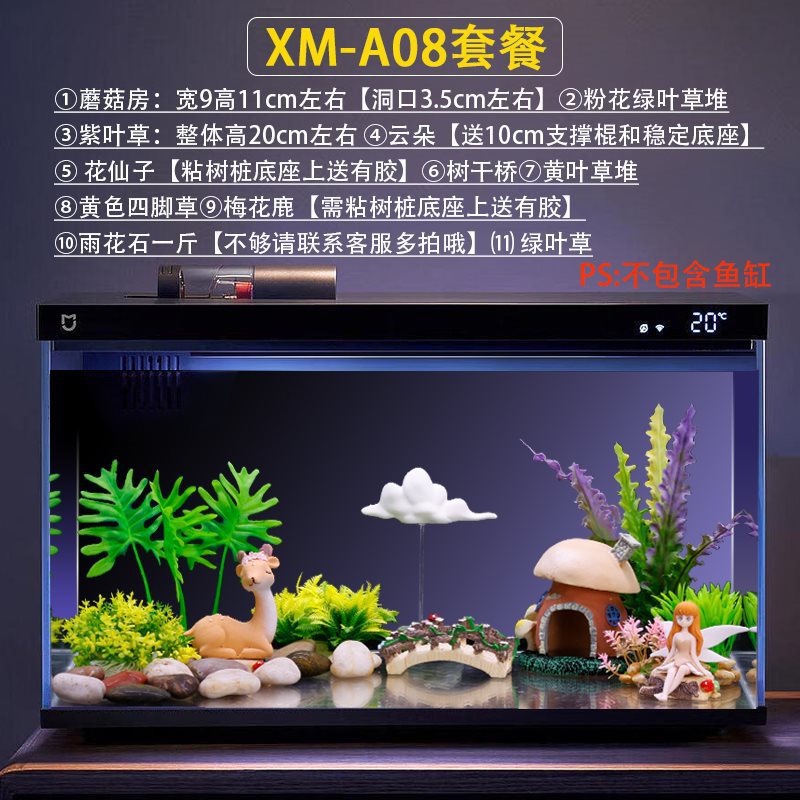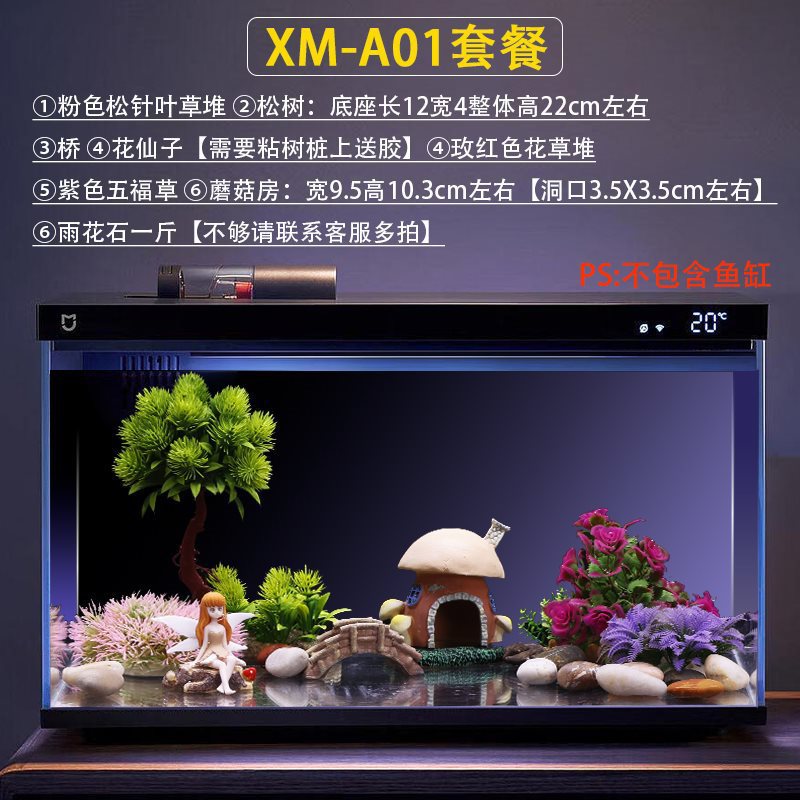 완성 된 장식 생태 경관 물고기 탱크 지능형 쌀 홈 시뮬레이션 패키지 전체 그림 기하학적 어항 조경 세트