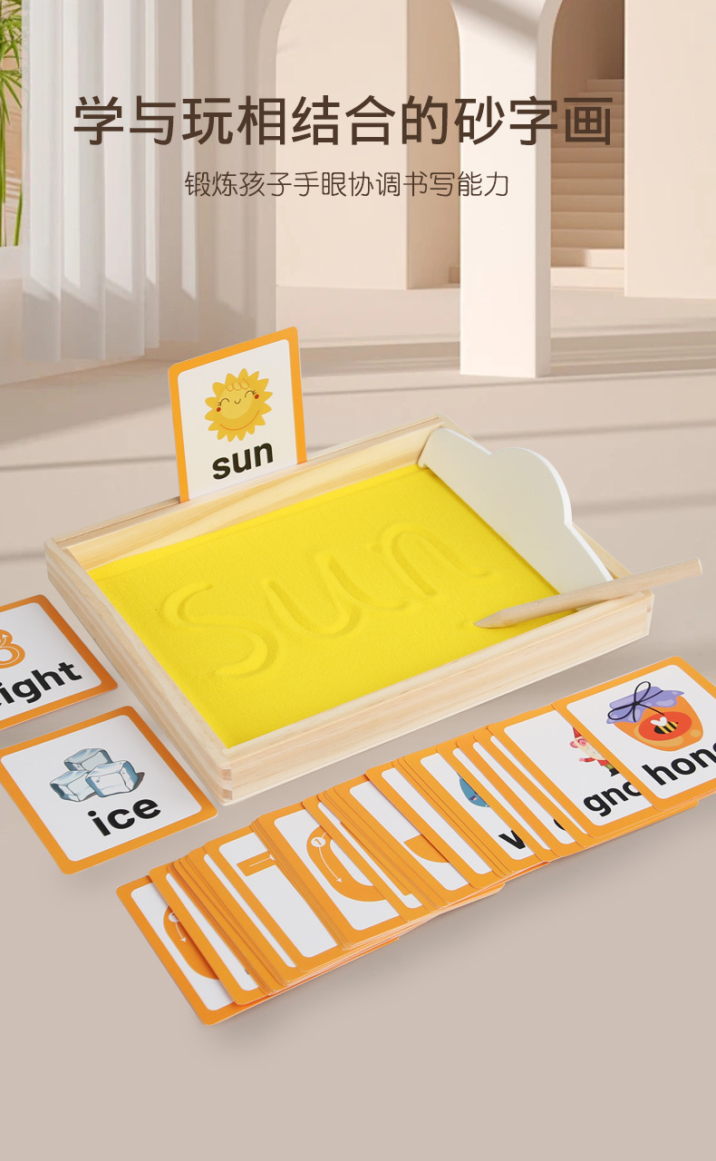 모래 그림 어린이 글쓰기 모래 긁기 교육 보조 나무 퍼즐 모래 조기 교육 어린이 영어 계몽 데스크탑 학습 장난감스토어 가기