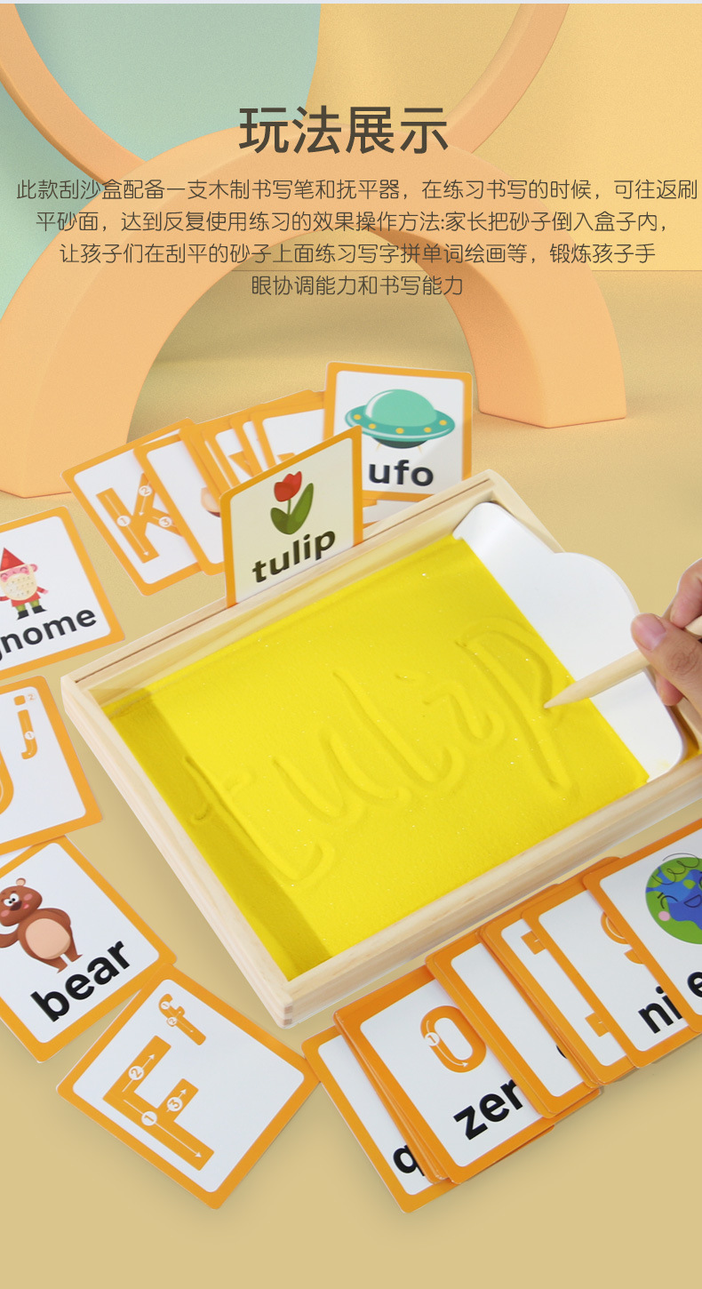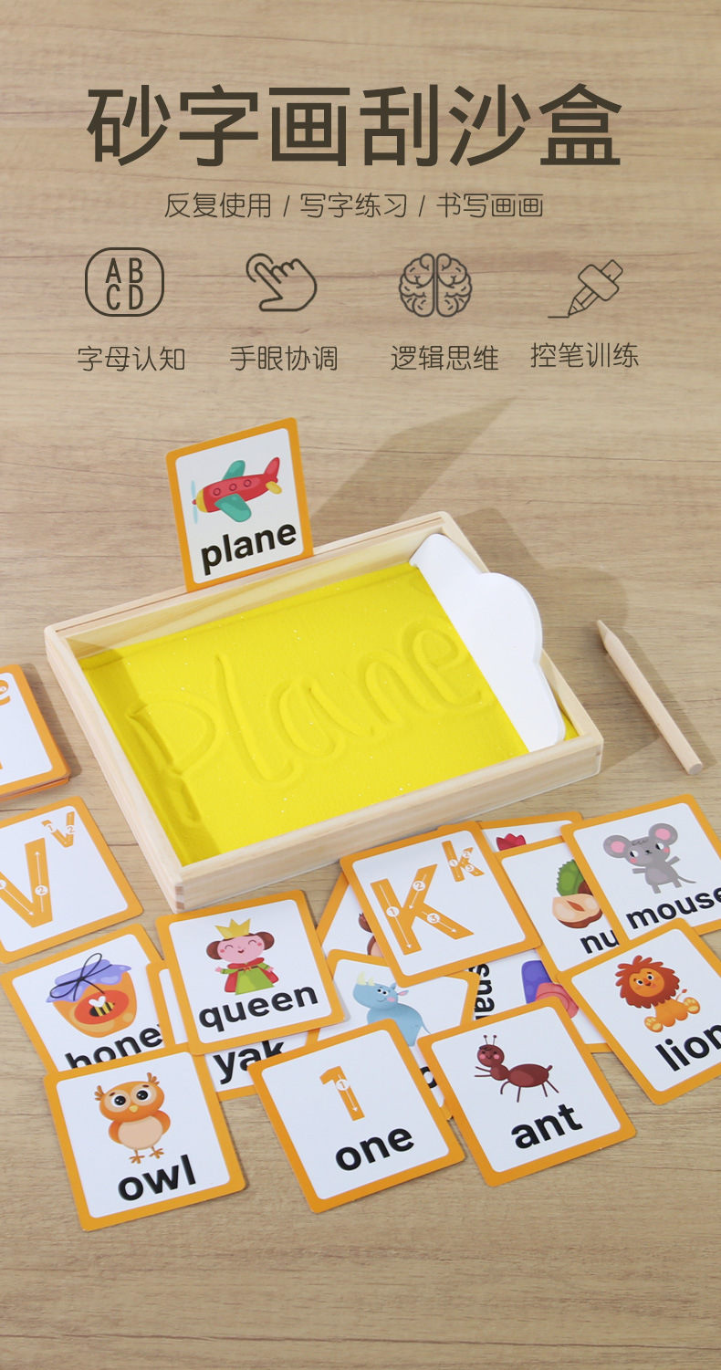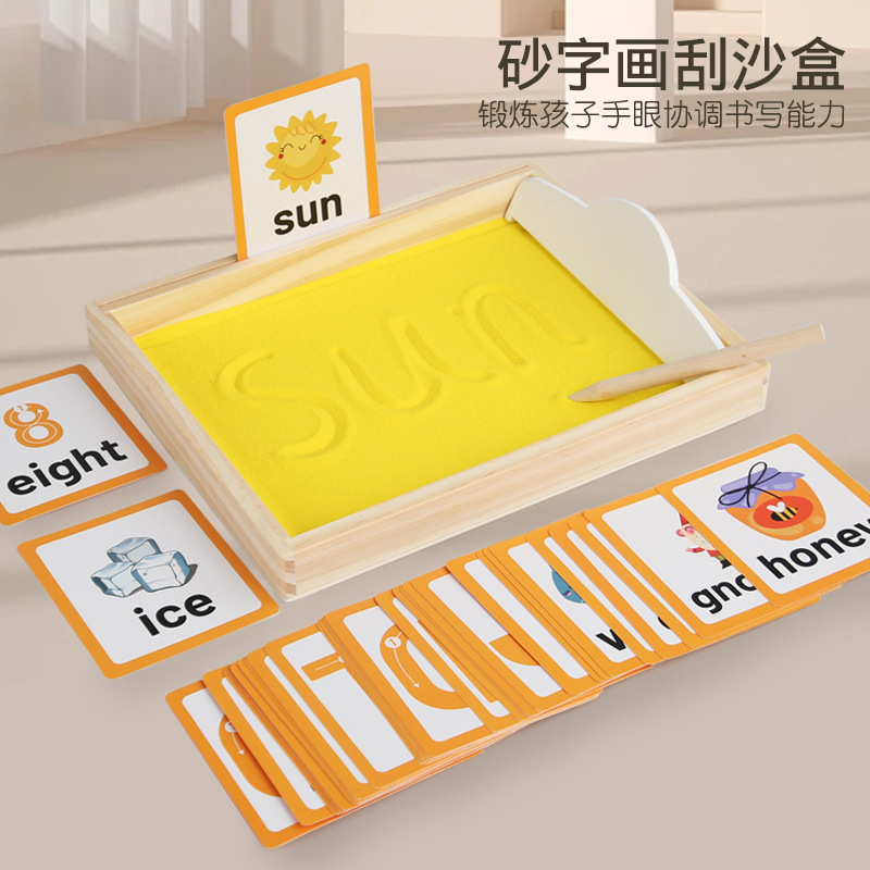 모래 그림 어린이 글쓰기 모래 긁기 교육 보조 나무 퍼즐 모래 조기 교육 어린이 영어 계몽 데스크탑 학습 장난감
