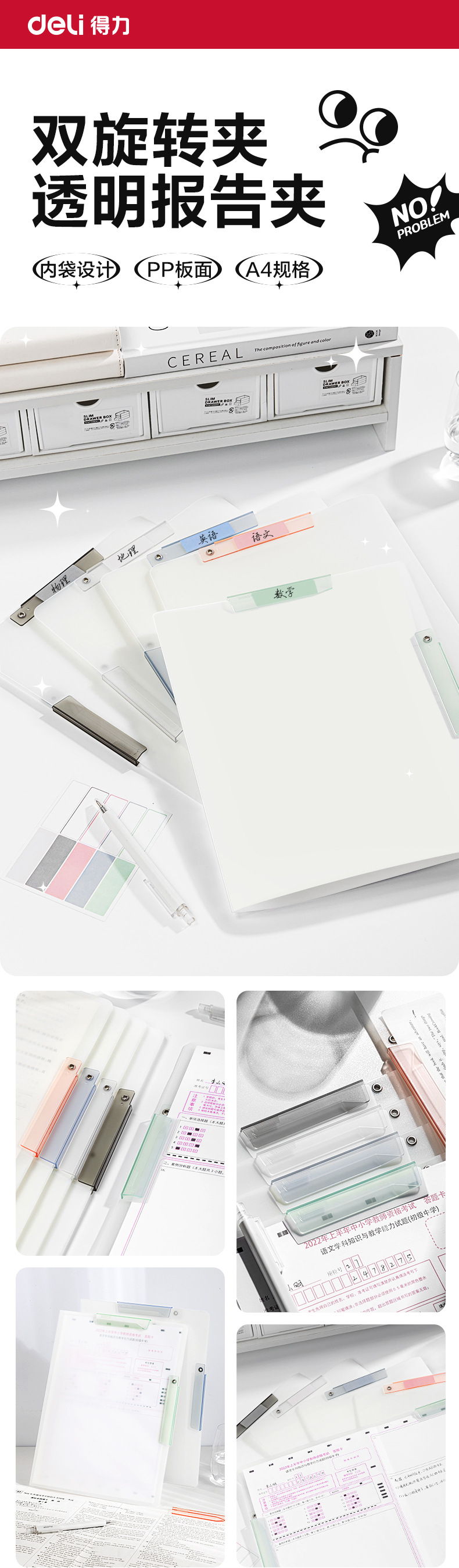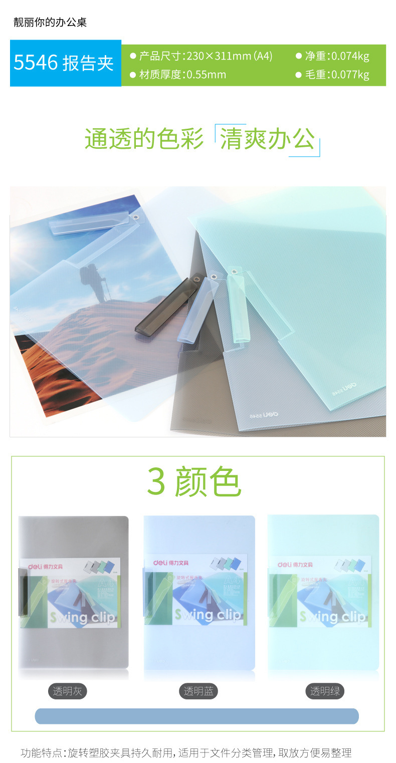 델리 회전로드 폴더 A4 용지 막대 클립 학생 사무실 데이터 파일 가방 계약 투명 스토리지 클립스토어 가기