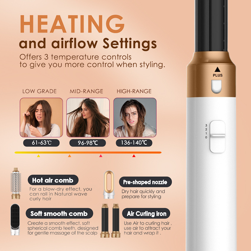 국경 간 5-in-1 뜨거운 공기 빗 다기능 스타일링 헤어 드라이어 완전 자동 컬링 아이언 범용 헤어 드라이어 빗 헤어 드라이어