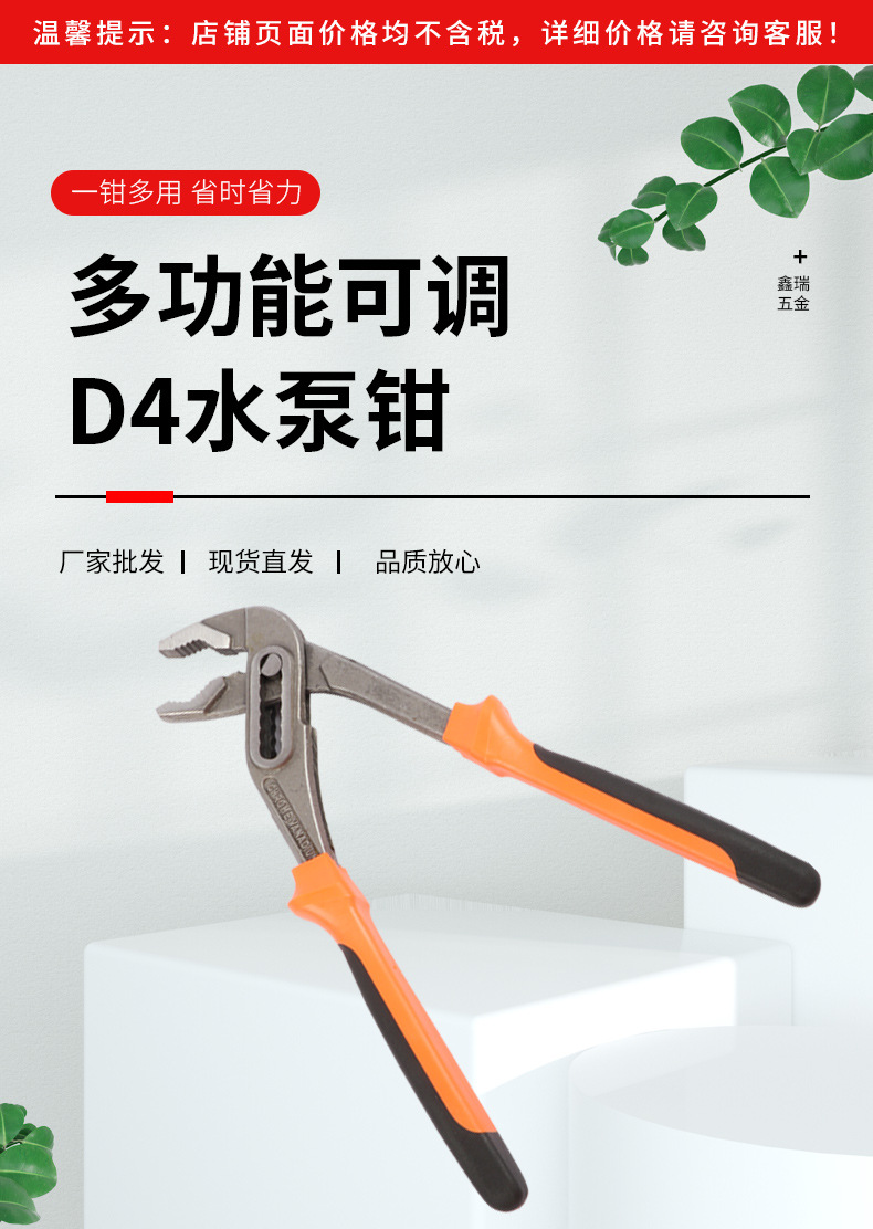 빠른 조정 물 펌프 펜치 다기능 펜치 가정용 다목적 렌치 대형 오픈 수도꼭지 파이프