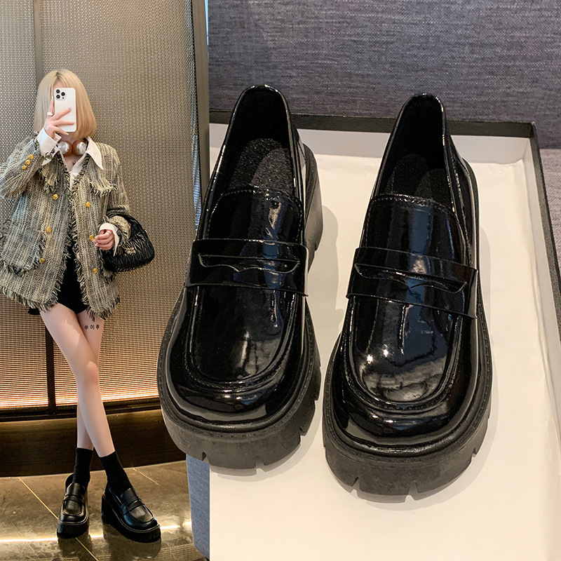 프랑스 로퍼 2024 봄과 가을 새로운 플러스 사이즈 라운드 헤드 방수 플랫폼 하이힐 두꺼운 바닥 두꺼운 힐 jk 작은 가죽 신발