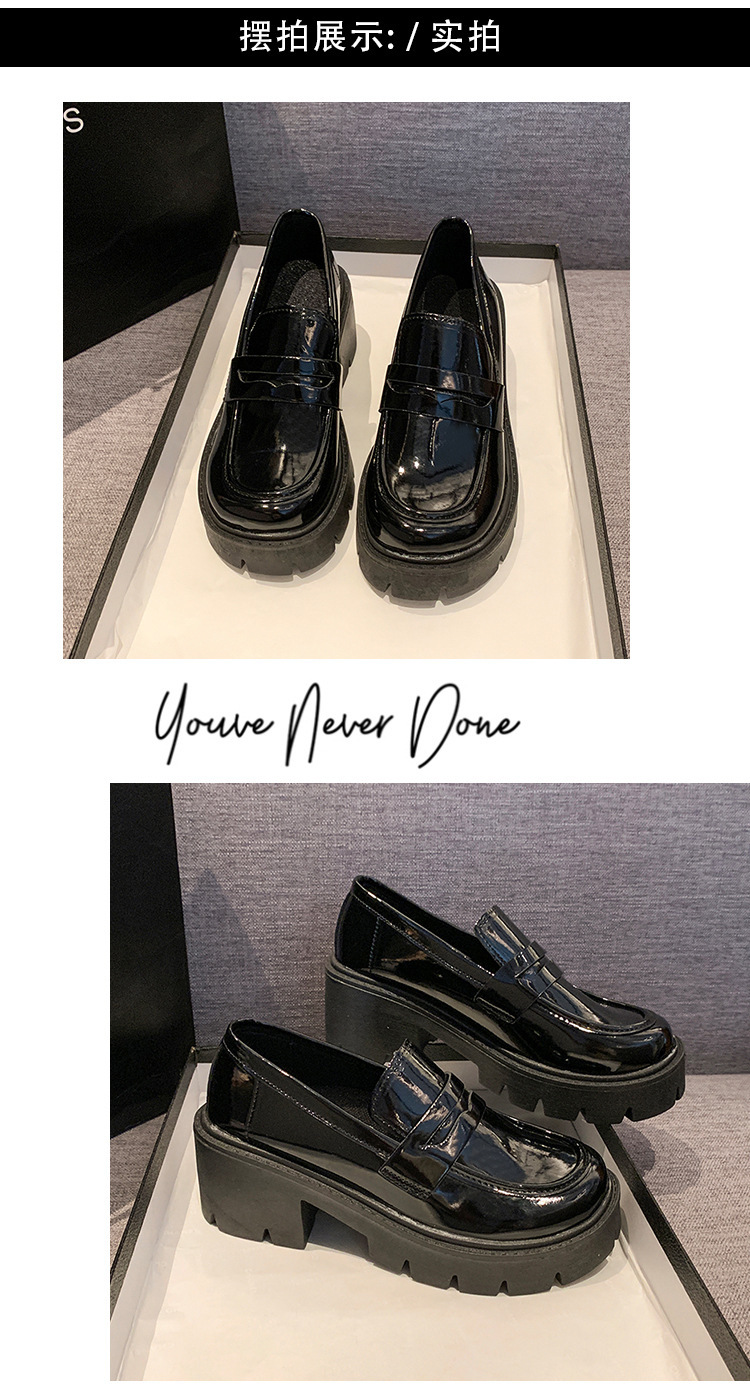 프랑스 로퍼 2024 봄과 가을 새로운 플러스 사이즈 라운드 헤드 방수 플랫폼 하이힐 두꺼운 바닥 두꺼운 힐 jk 작은 가죽 신발스토어 가기