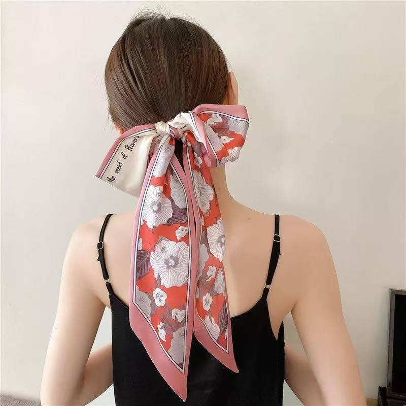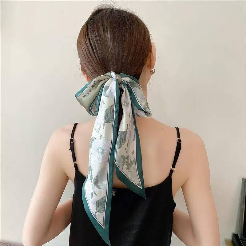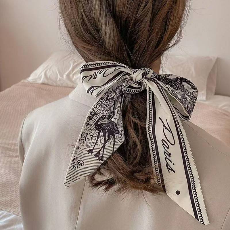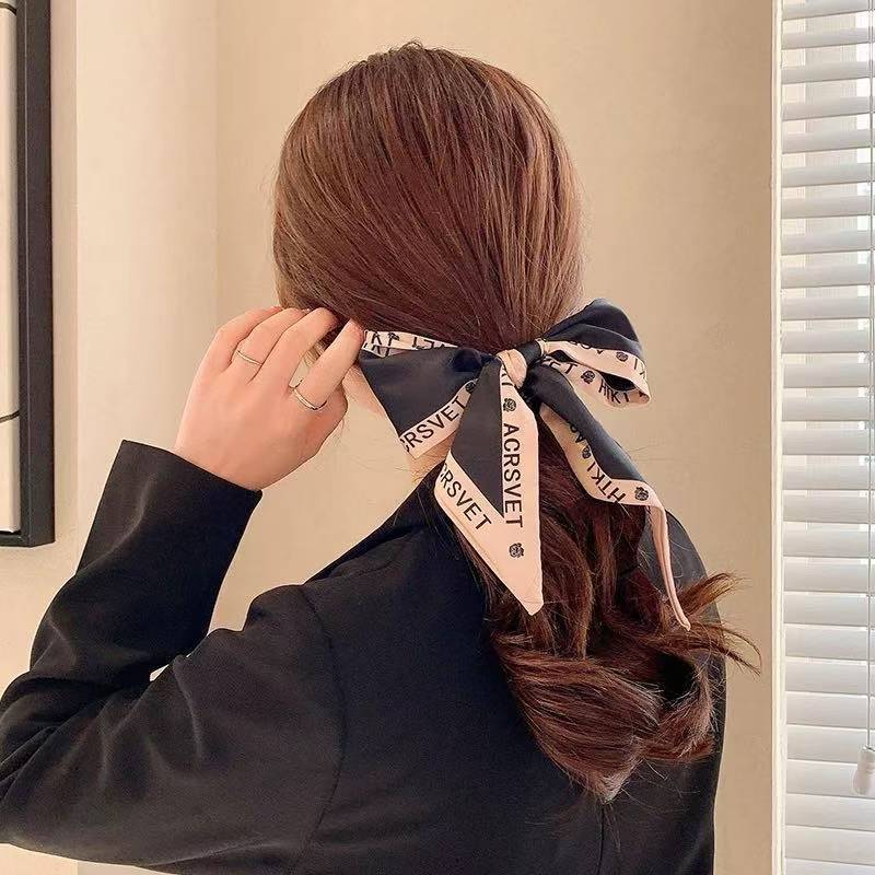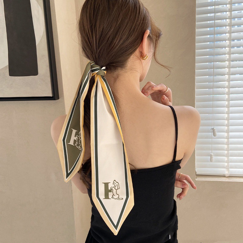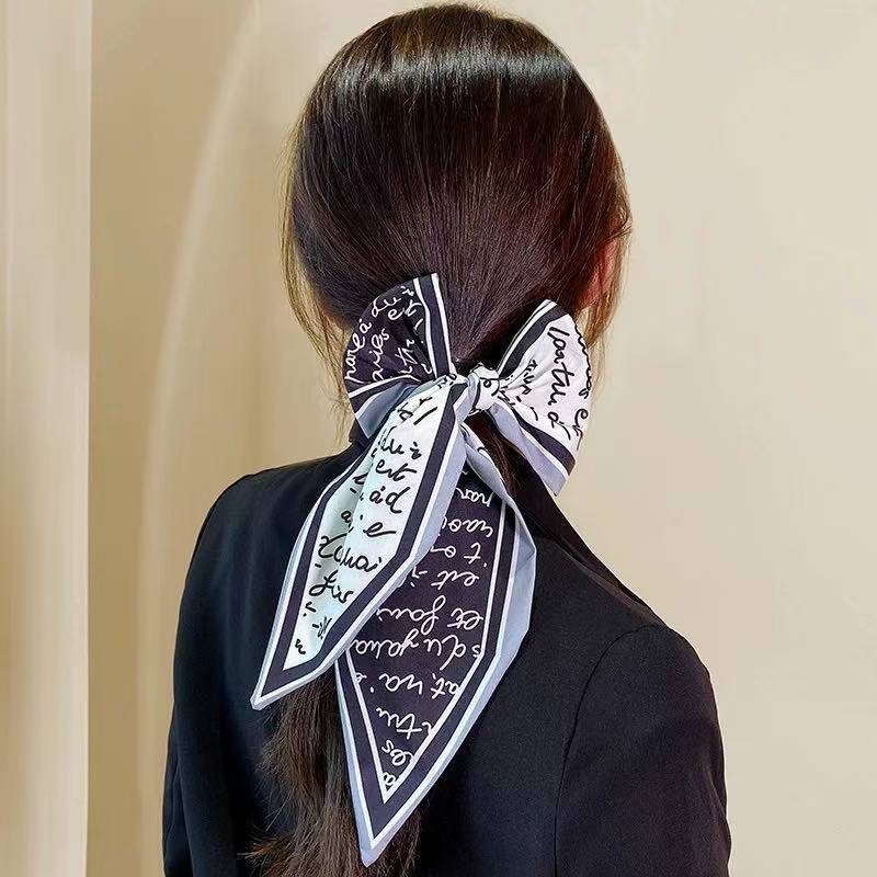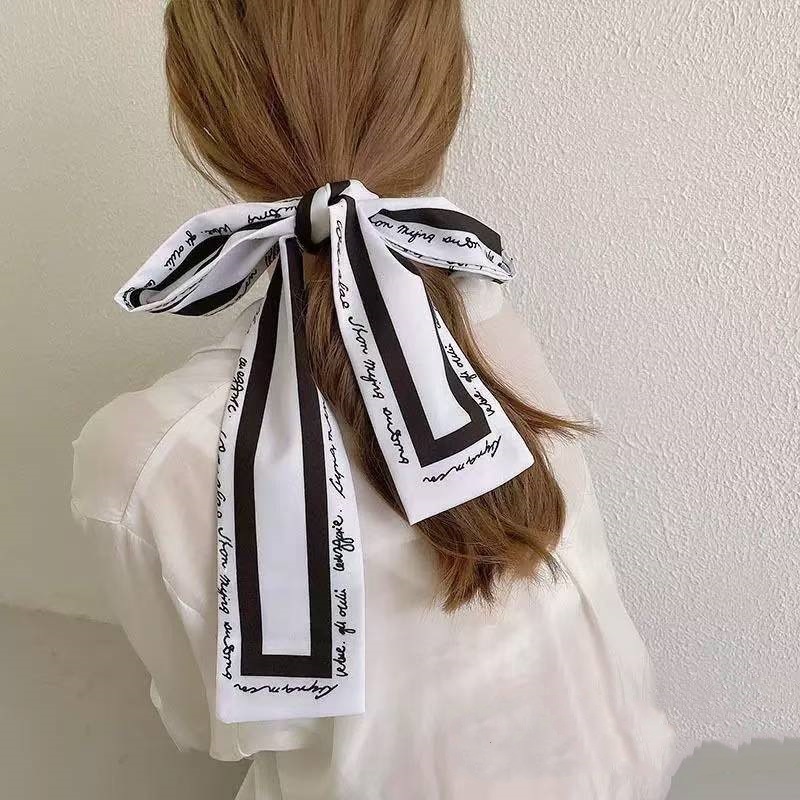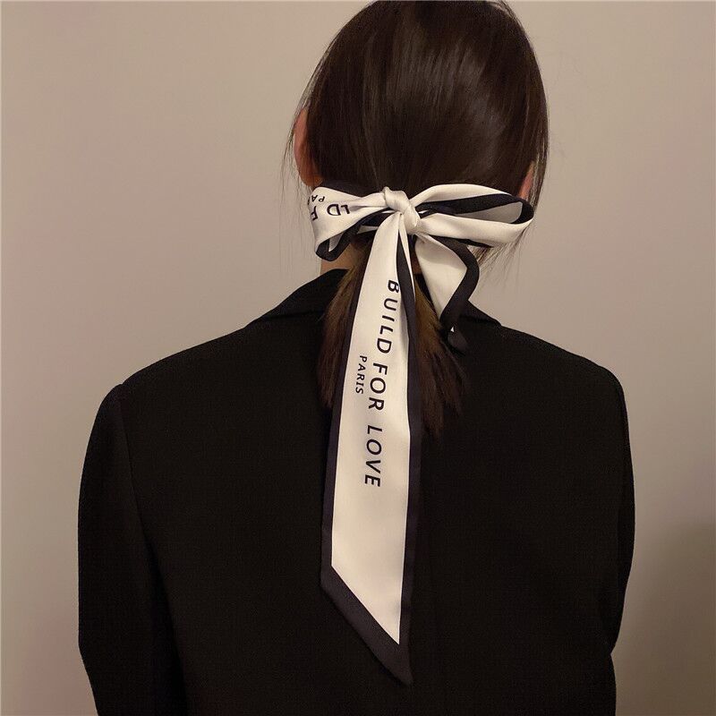 간단한 편지 긴 실크 스카프 헤어 밴드 프렌치 레트로 프렌치 스카프 장식 헤어 타이 리본 여성용 헤어 타이 리본