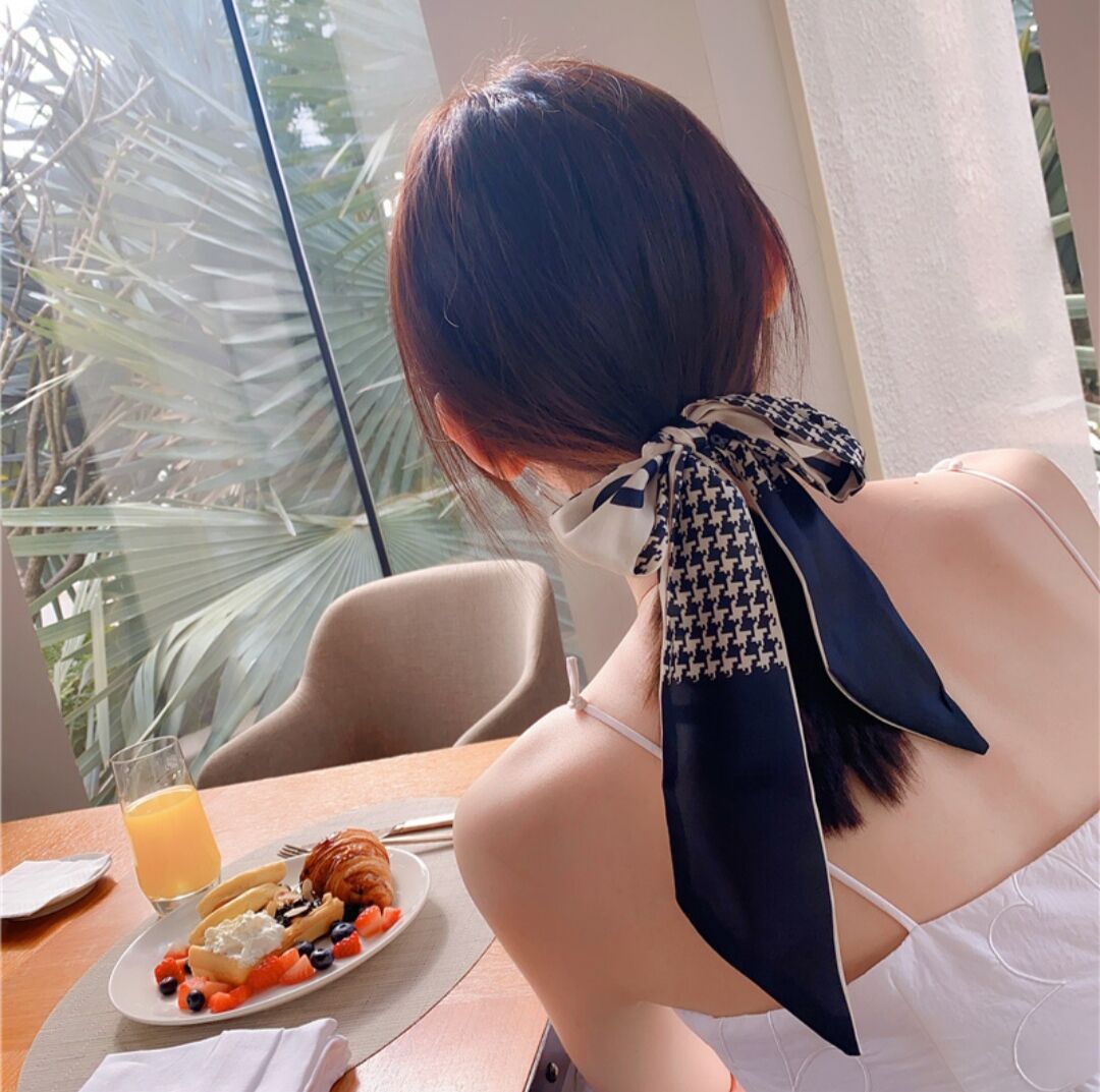 간단한 편지 긴 실크 스카프 헤어 밴드 프렌치 레트로 프렌치 스카프 장식 헤어 타이 리본 여성용 헤어 타이 리본스토어 가기