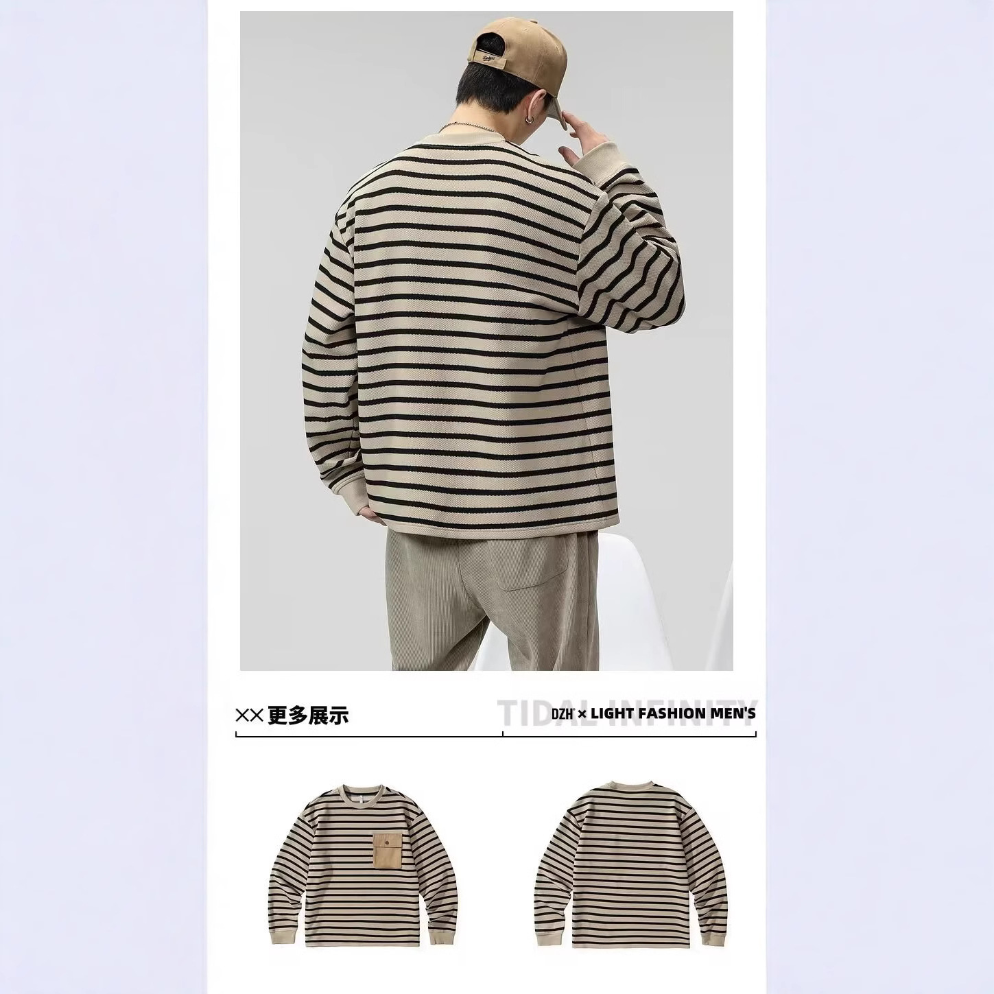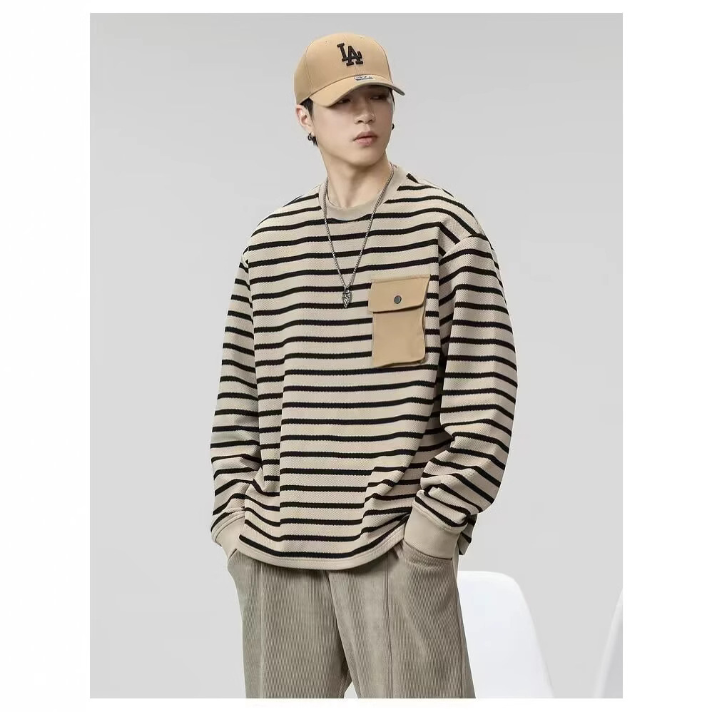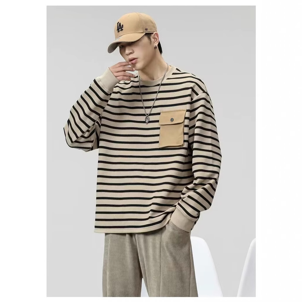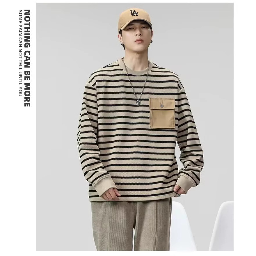 대외 무역 남성용 줄무늬 긴팔 셔츠 남성용 트렌디 티셔츠 남자 스웨터 가을 남성베이스 셔츠 봄과 가을 타이드 탑스토어 가기