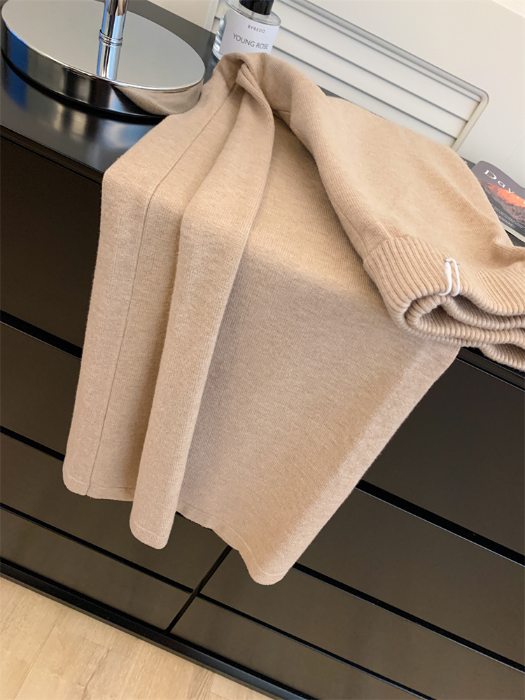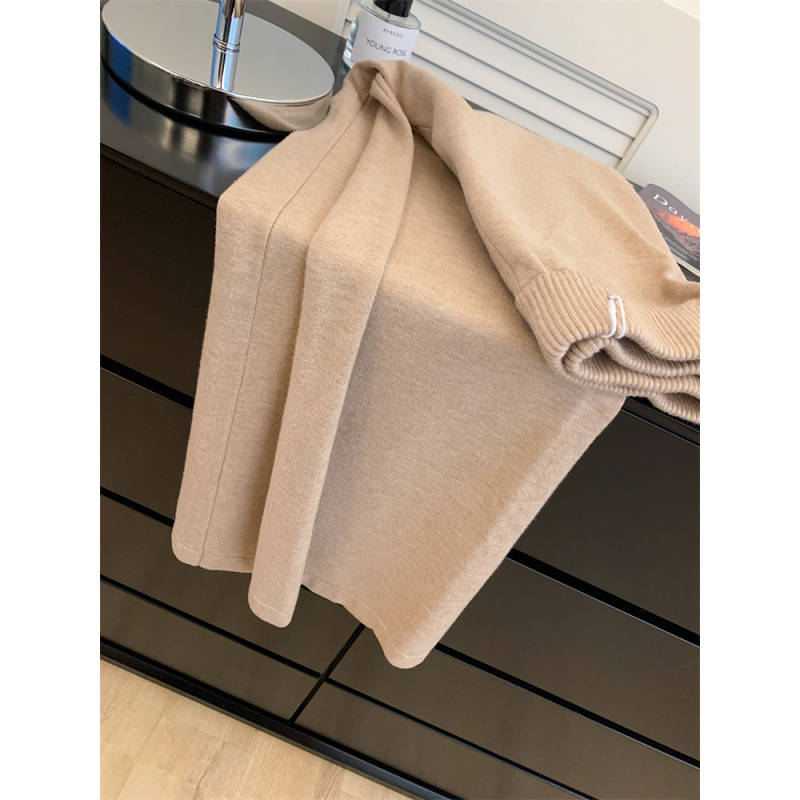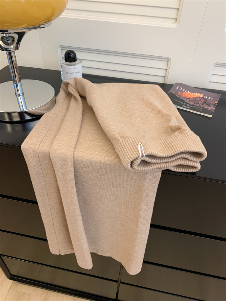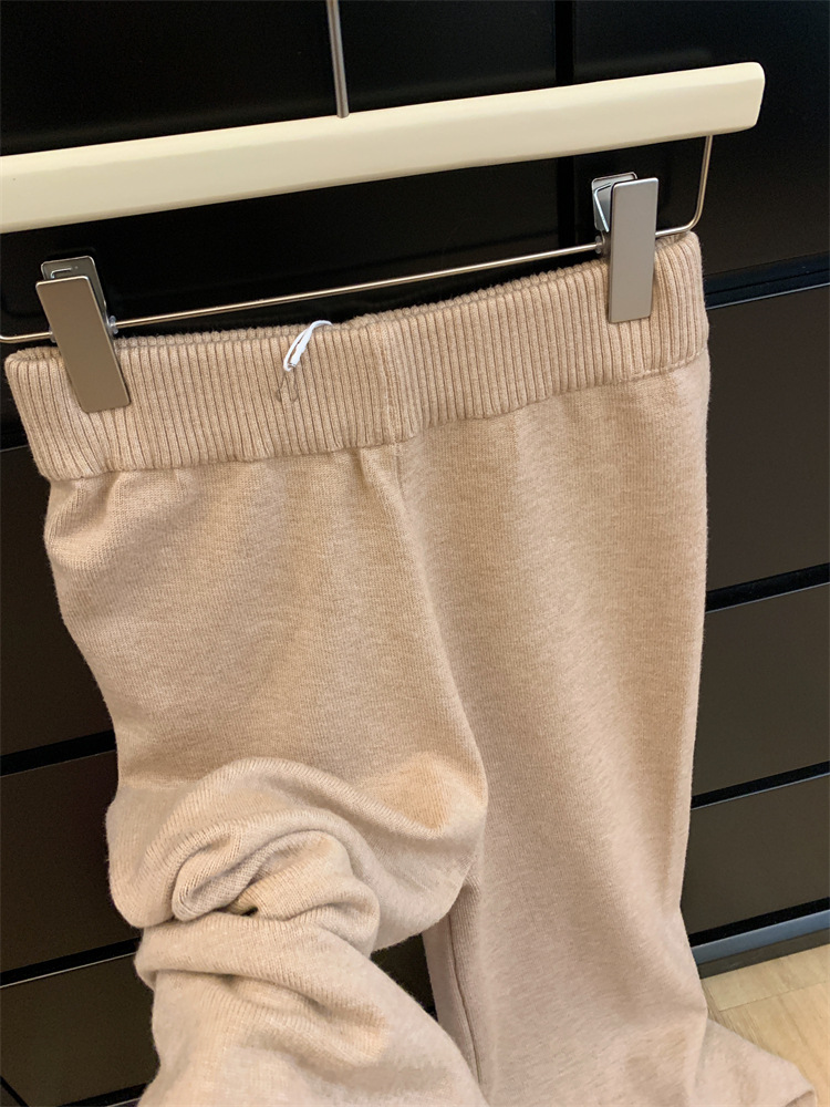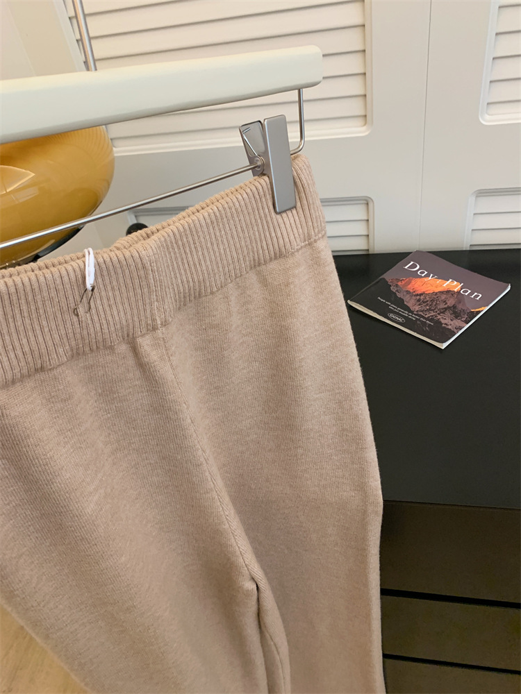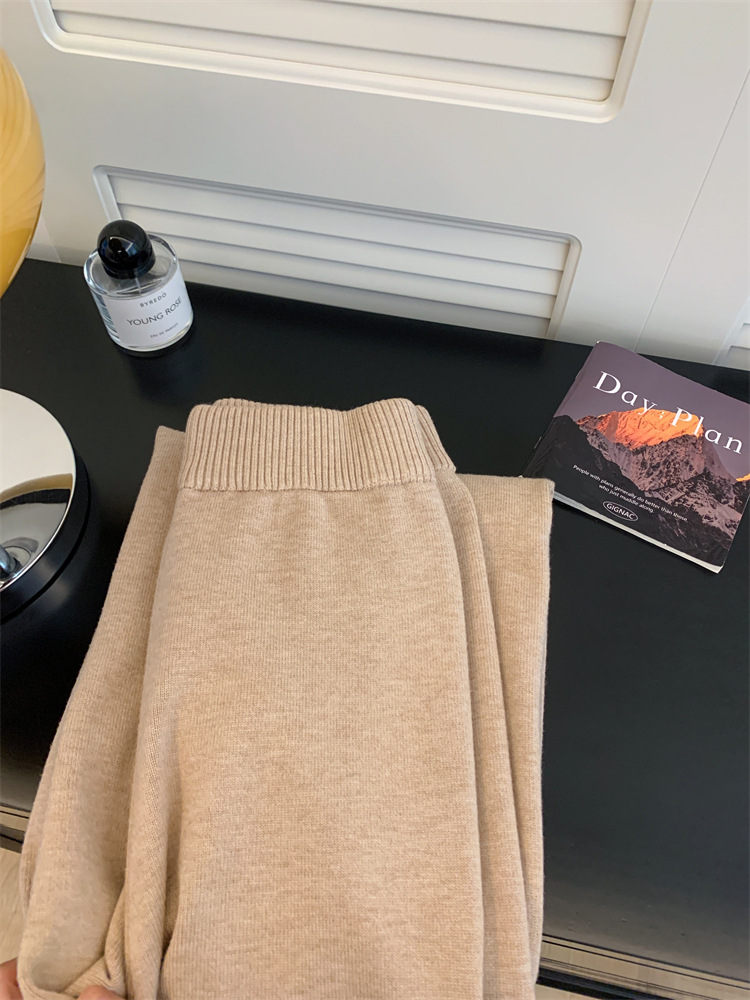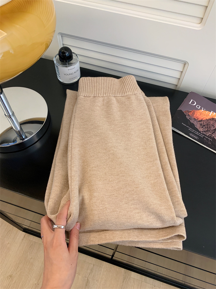 여성용 두꺼운 하이웨이스트 울 드레이프 니트 와이드 팬츠 2025 가을 겨울 신상 캐주얼 슬리밍 모직 팬츠 트렌디
