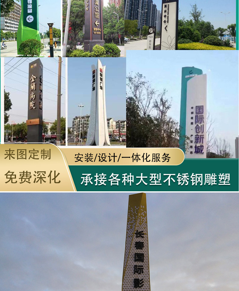 정신 요새 광고판 스테인레스 스틸 야외 가이드 표지판 대형 가이드 랜드 마크 표시기 가이드 표지판 풍경 장식품