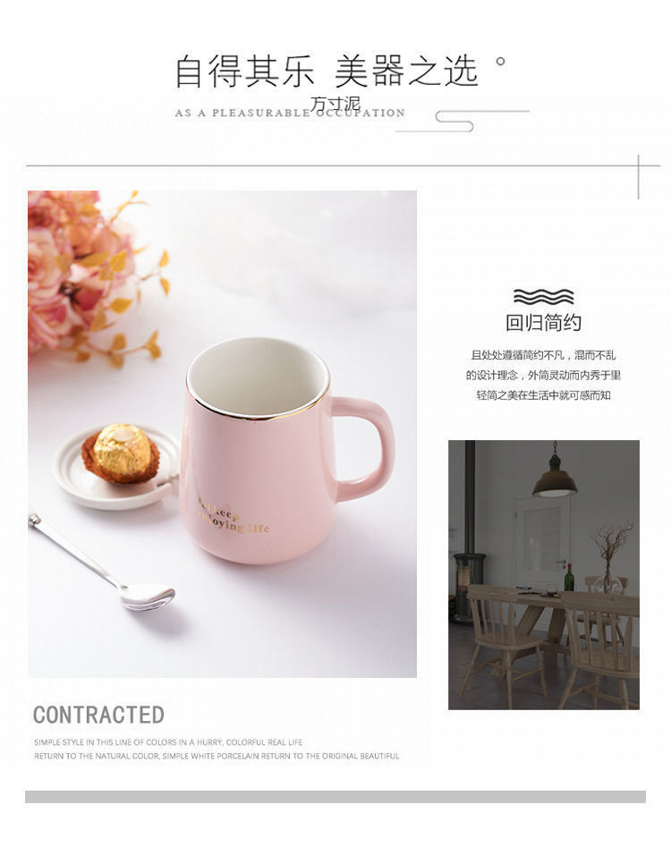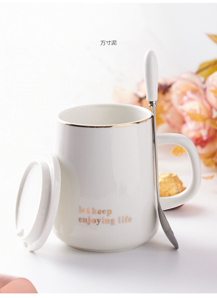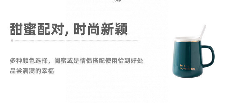 뚜껑 숟가락으로 마시는 물 컵 세라믹 간단한 컵 홈 오피스 대용량 커플 컵 소스 공장 도매