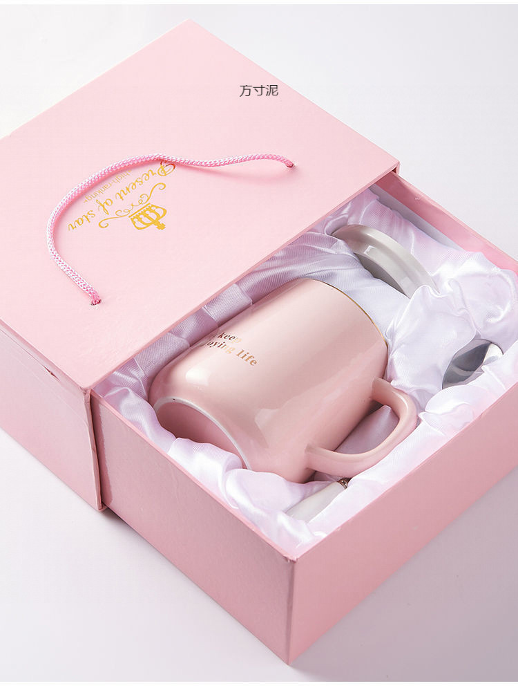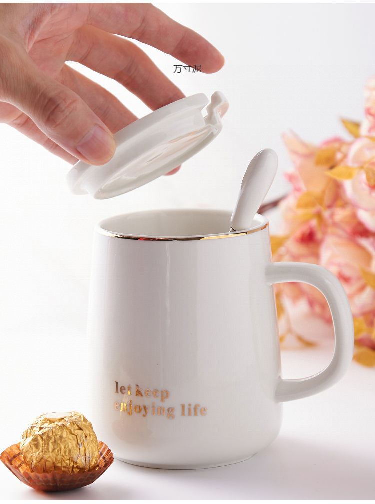 뚜껑 숟가락으로 마시는 물 컵 세라믹 간단한 컵 홈 오피스 대용량 커플 컵 소스 공장 도매스토어 가기