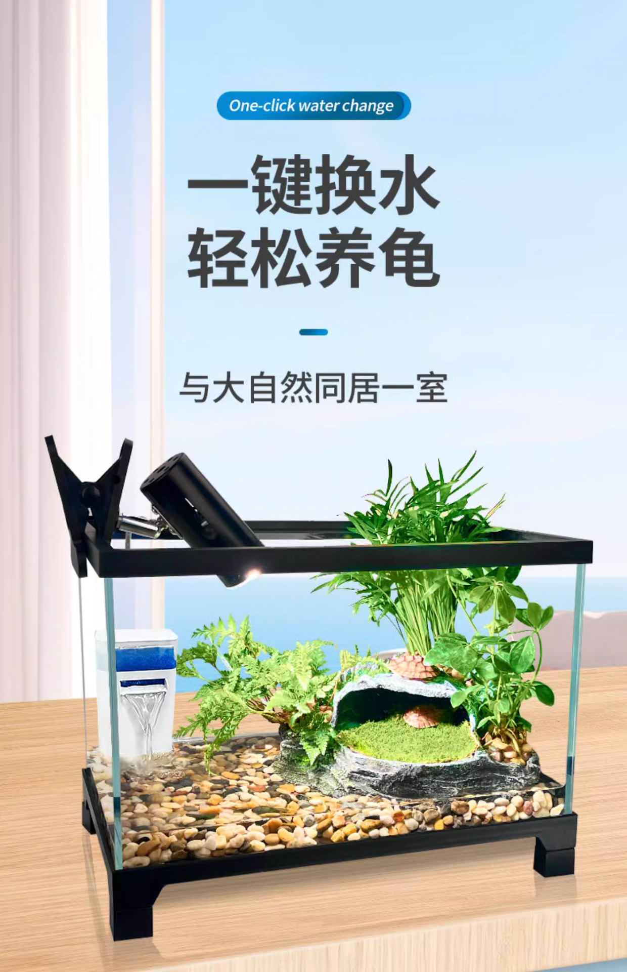 초백색 유리 거북 탱크 가정용 거실 생태 거북 탱크 거북이 특수 탱크 바구니 테이블 먹이 어류 탱크스토어 가기