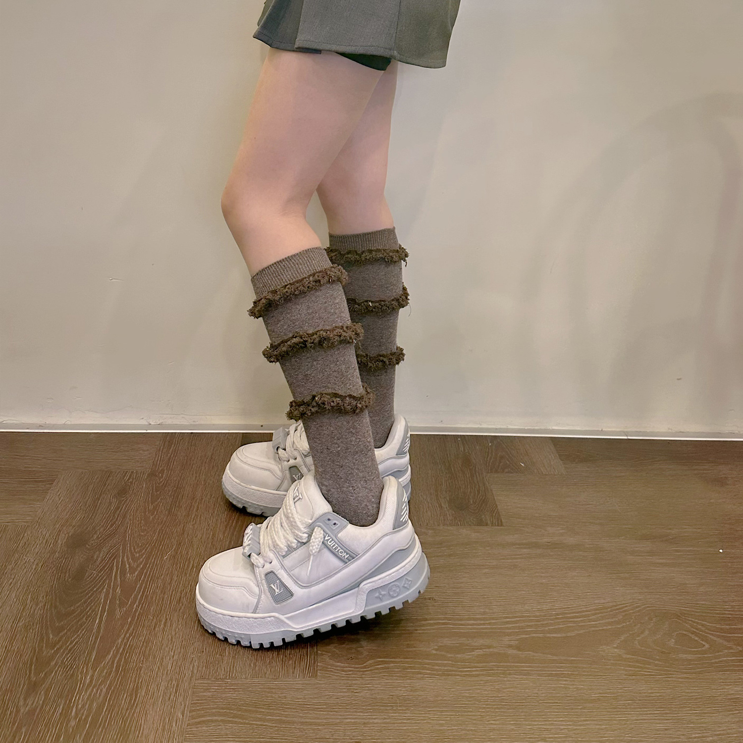 오리지널 디자이너 성격 조임 양말 3 반지 술 원시 가장자리 미드 튜브 양말 플랫 쇼 가을 및 겨울 패션 면화 양말