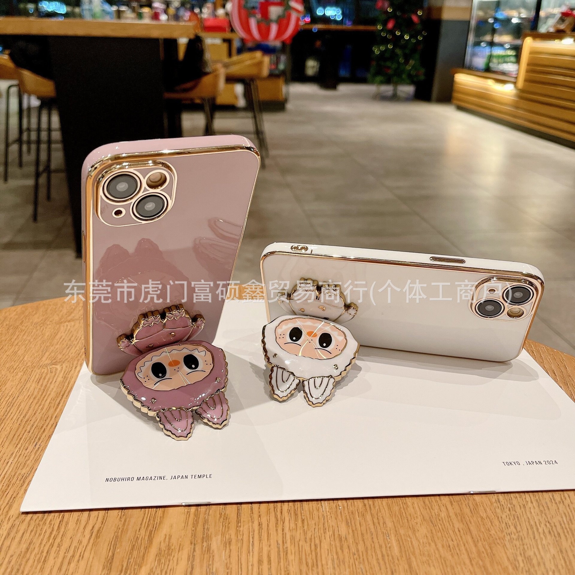 소녀와 소년을위한 고무 휴대 전화 스티커 회전 가능한 만화 전기 도금 귀여운 휴대 전화 스티커와 함께 Labu 휴대 전화 브래킷스토어 가기