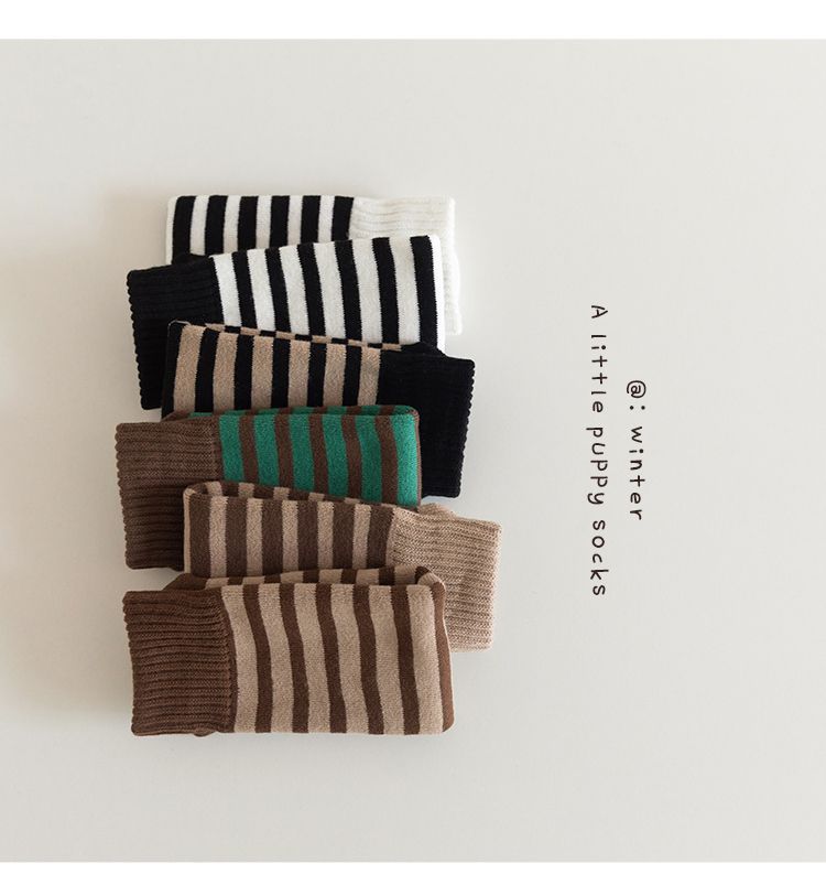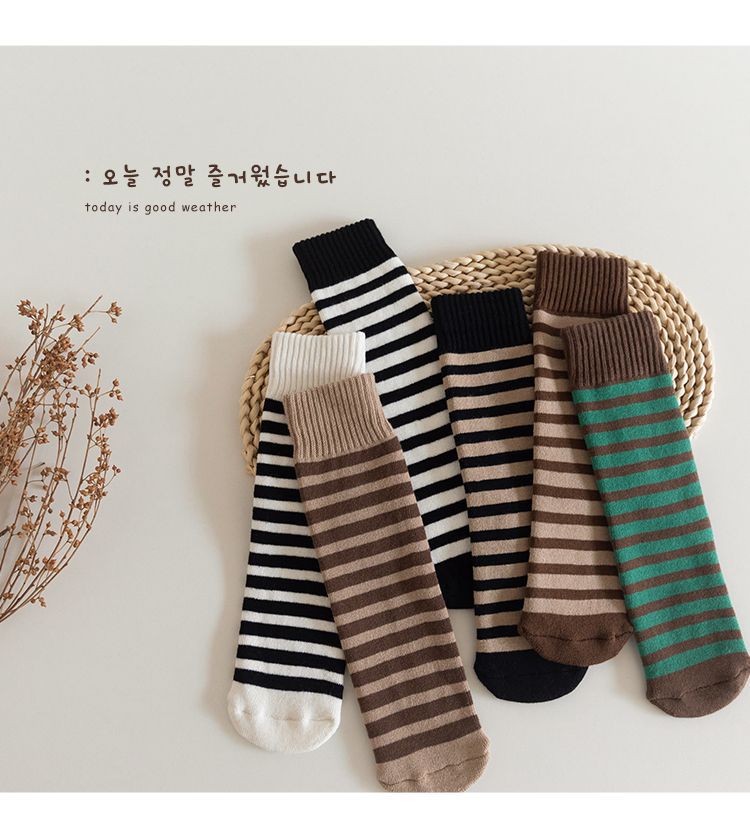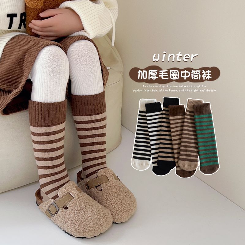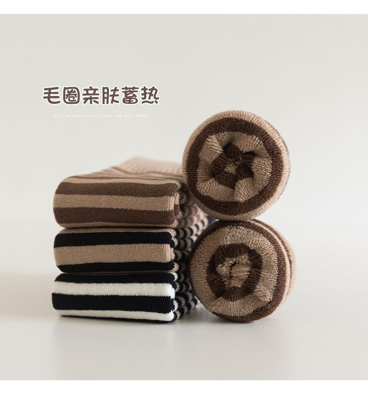 어린이 양말 따뜻한 소년 소녀 스타킹 기모 두꺼운 겨울 아기 테리 스트라이프 미드 튜브 타월 양말스토어 가기