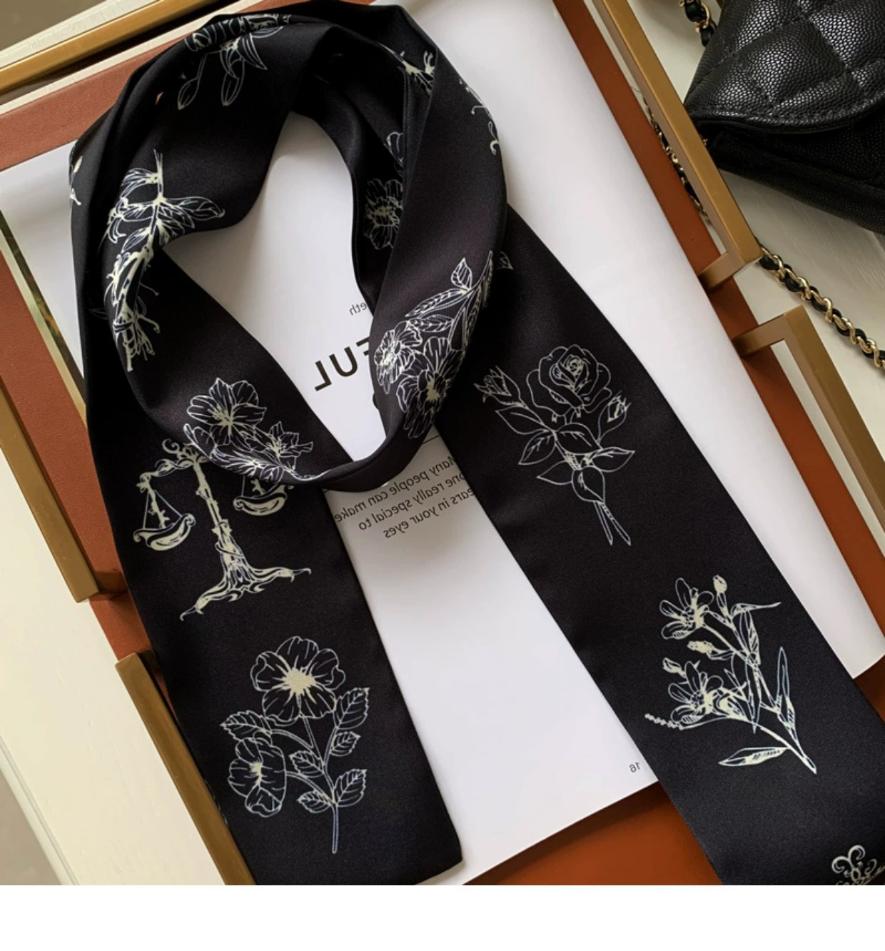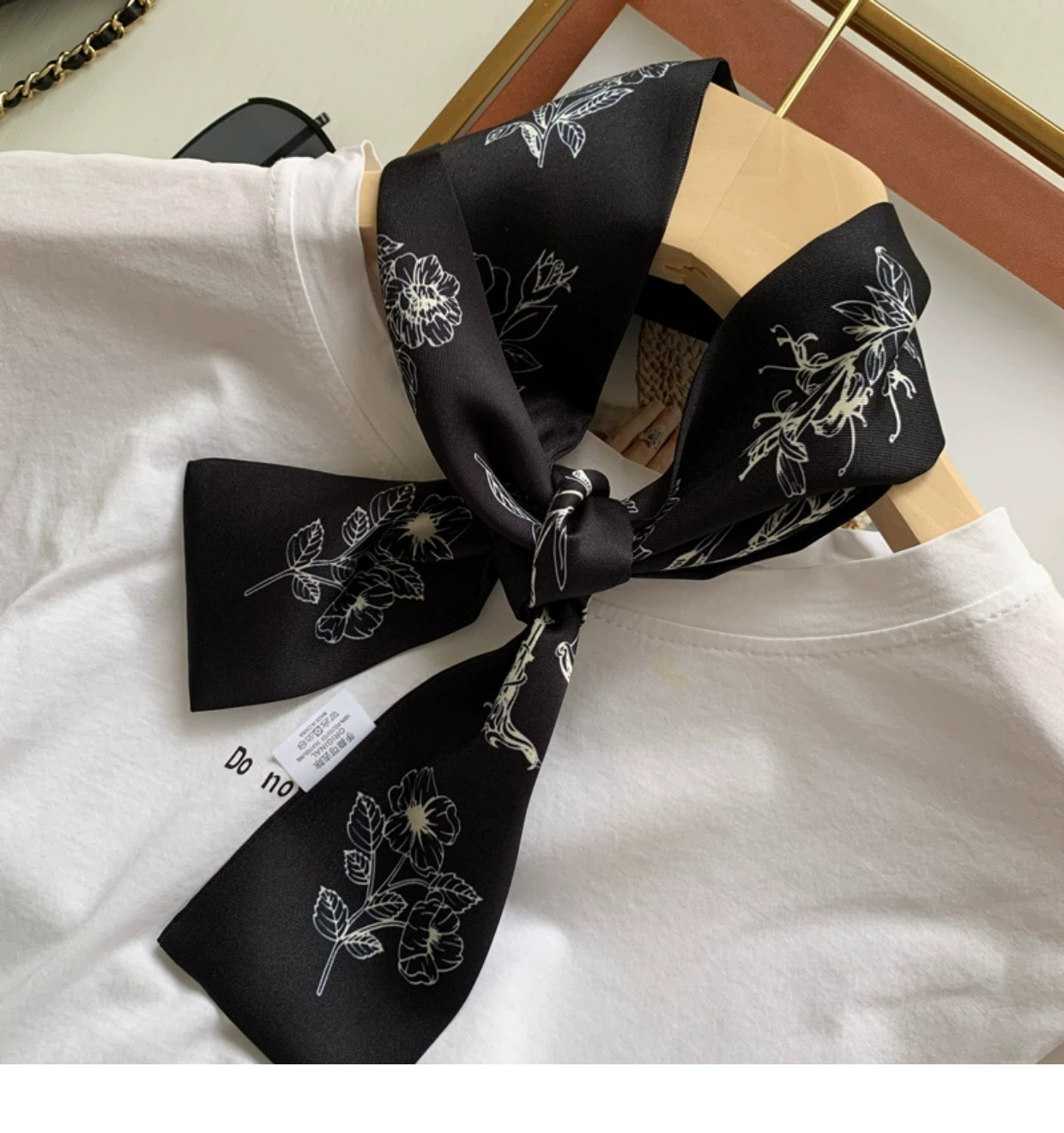 프랑스 스타일 로즈 프린트 긴 스카프 하이 엔드 우아한 레트로 헤어 타이 리본 여성 올 매치 레트로 로맨틱 헤어 밴드스토어 가기