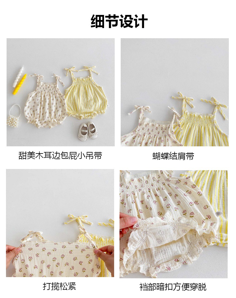 여름 한국식 아기 옷 얇은 슬링 랩 방귀 옷 신생아 소녀 아기 달콤한 꽃 올인원 의상