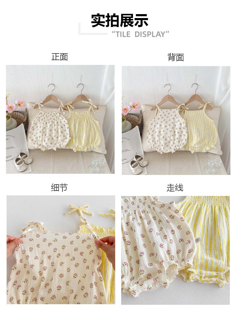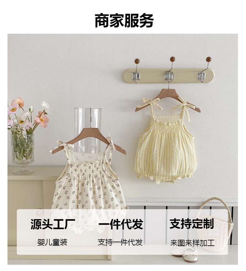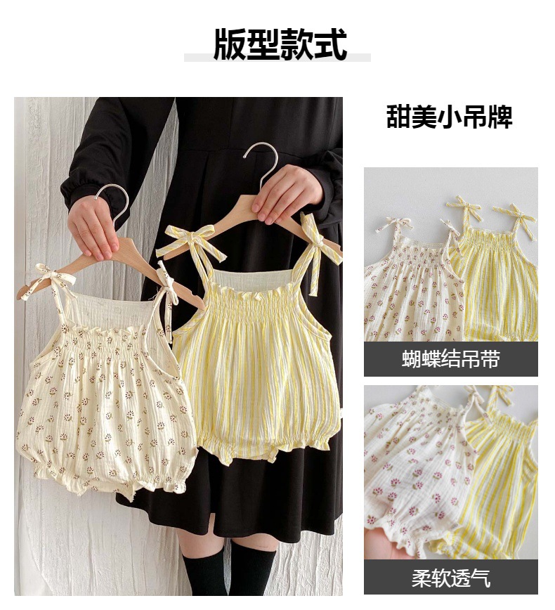 여름 한국식 아기 옷 얇은 슬링 랩 방귀 옷 신생아 소녀 아기 달콤한 꽃 올인원 의상스토어 가기