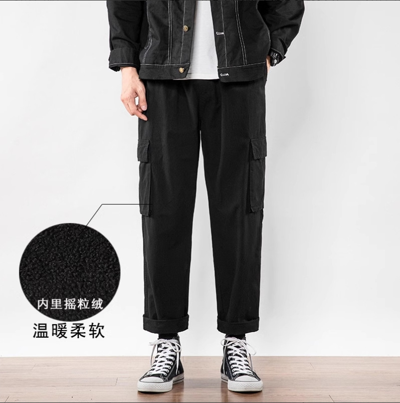 William March Tooling 스웨트 팬츠 남성용 루즈 튜닉 팬츠 겨울 기모 두꺼운 트렌디 캐주얼 롱 팬츠스토어 가기