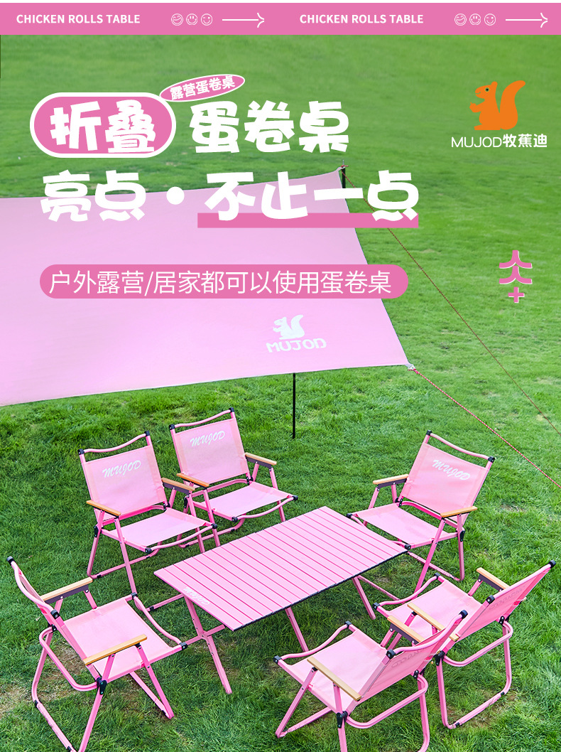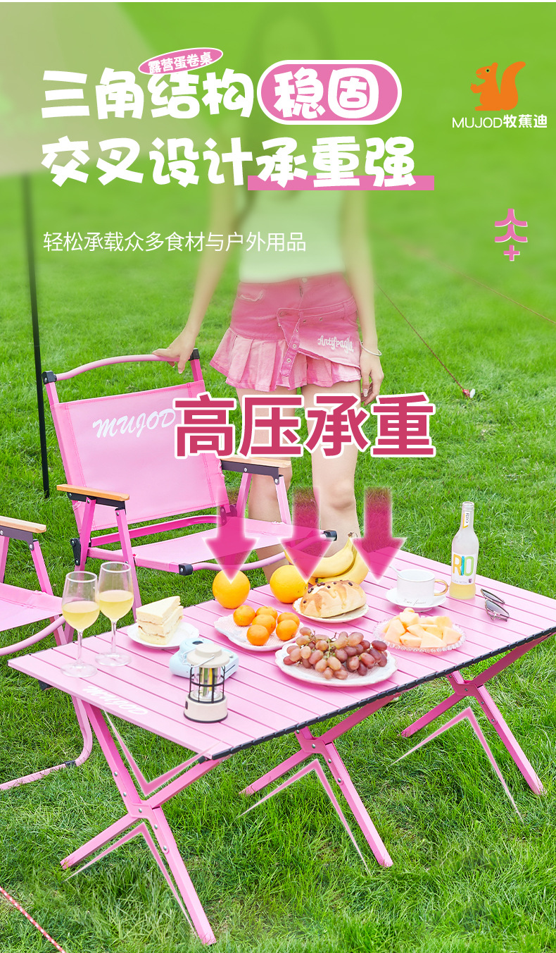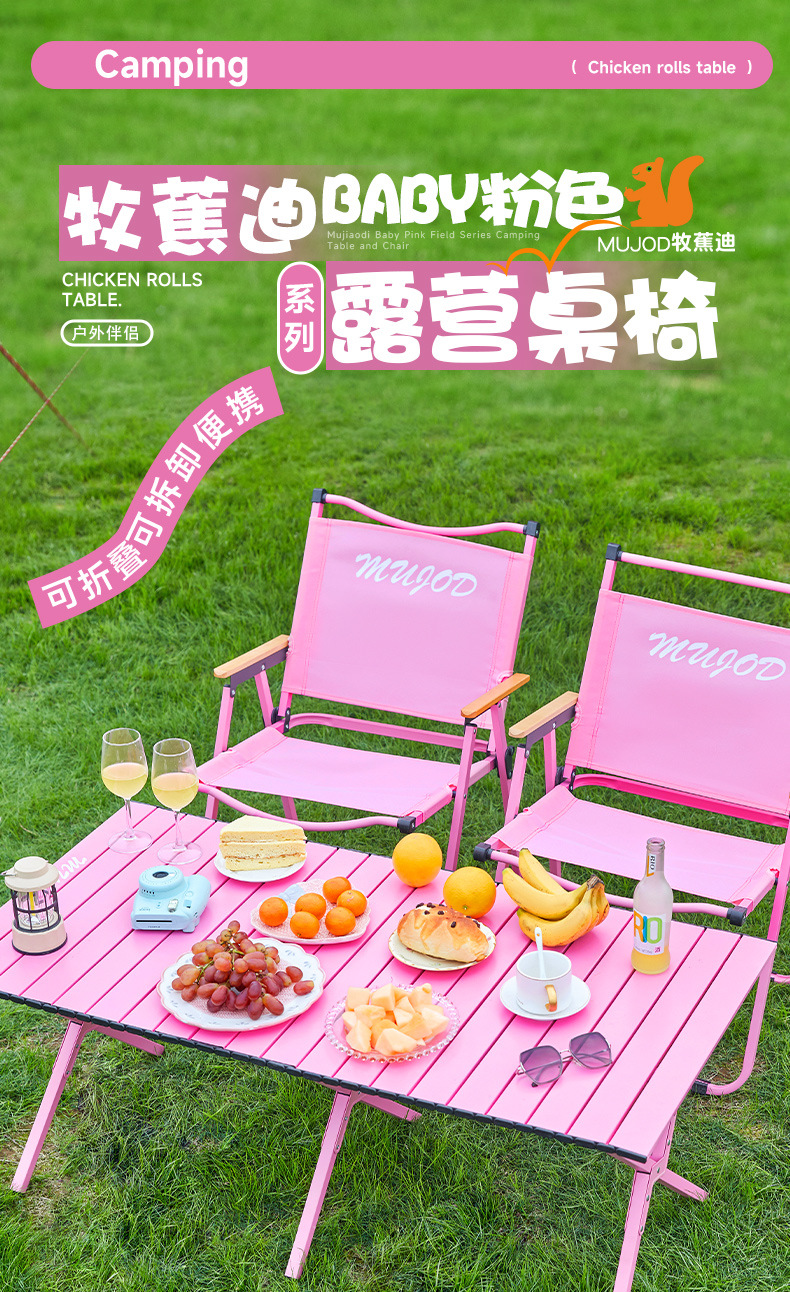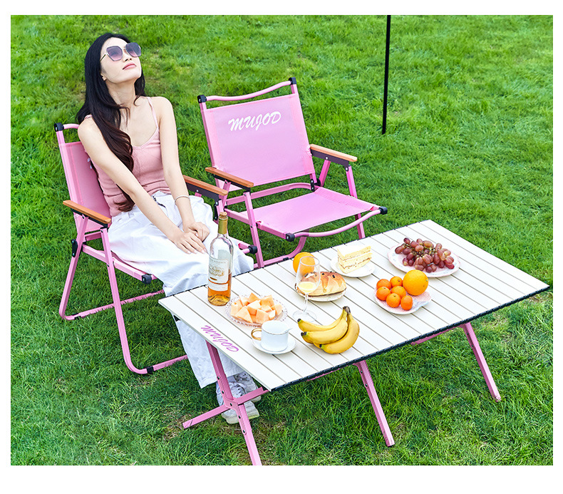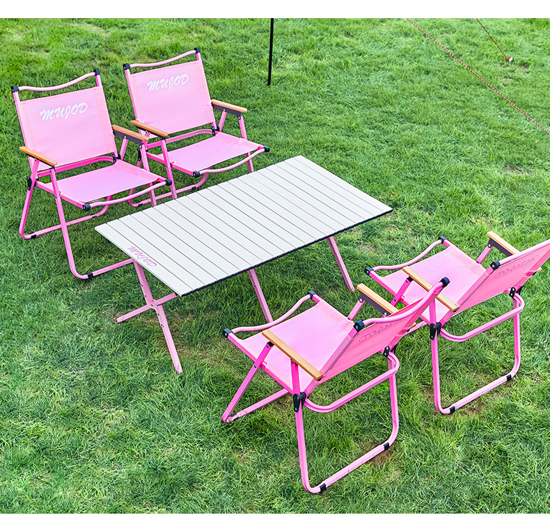 휴대용 야외 피크닉 캠핑 장비 의자 의자 의자 의자를 세트 핑크 테이블 접이식 의자 계란 롤