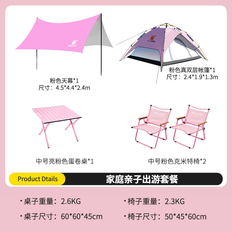 • 핑크 캐노피 1개 + 텐트 1개 + 중형 테이블 1개 + 중형 의자 2개