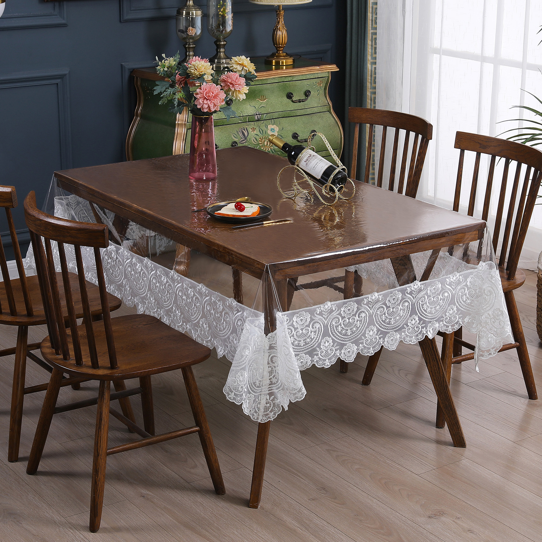 PVC 일회용 테이블 천 소스 공장 방수 및 내유성 가정용 커피 테이블 식탁 마모 방지 및 미끄럼 방지 PVC 테이블 천스토어 가기