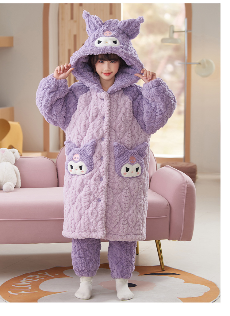소녀 산호 양털 나이트 가운 두꺼운 겨울 옷 큰 어린이 만화 어린이 아기 3 층 퀼트 파자마 홈 옷