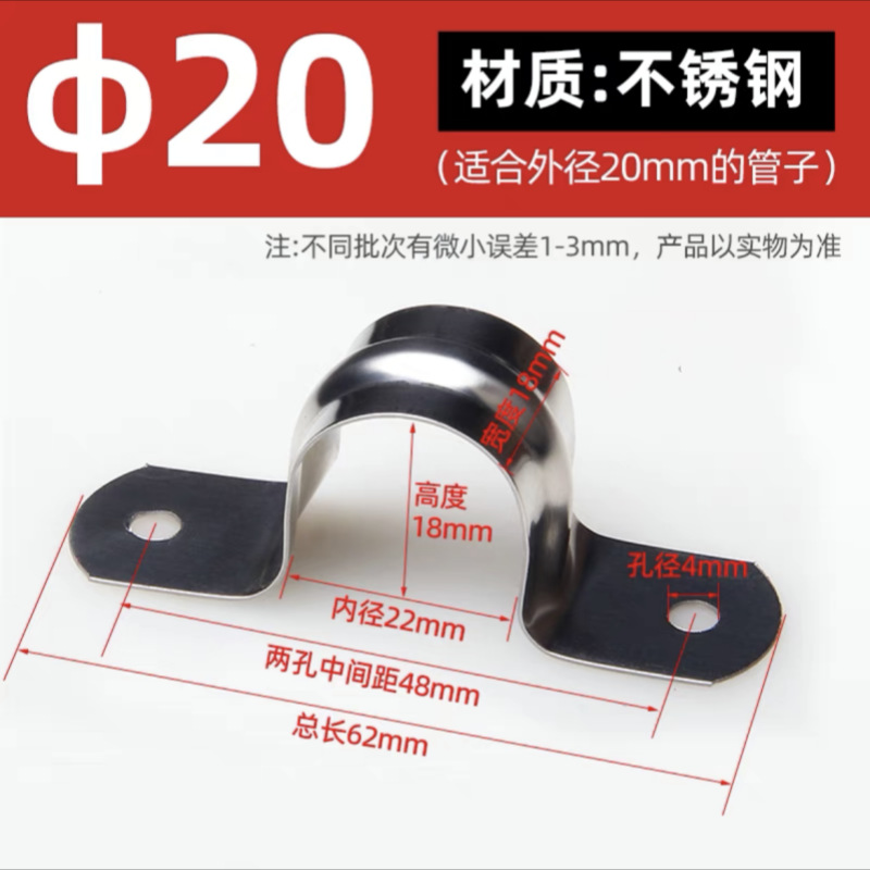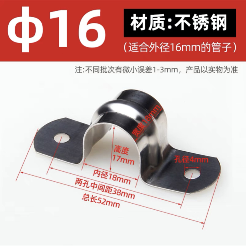 리마 카드 스테인레스 스틸 일방적 인 파이프 클램프 u 형 16 철 열 클램프 20 파이프 버클 고정 파이프 클램프 확장 된 강화 유형스토어 가기