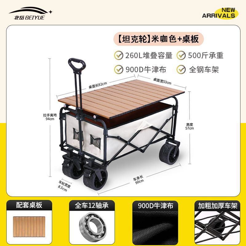 • ★ 카키 [이중 두꺼운 옥스포드 천] - 상단 구성 / 10inch 탱크 휠 / 더블 브레이크 + 접이식 테이블 ★