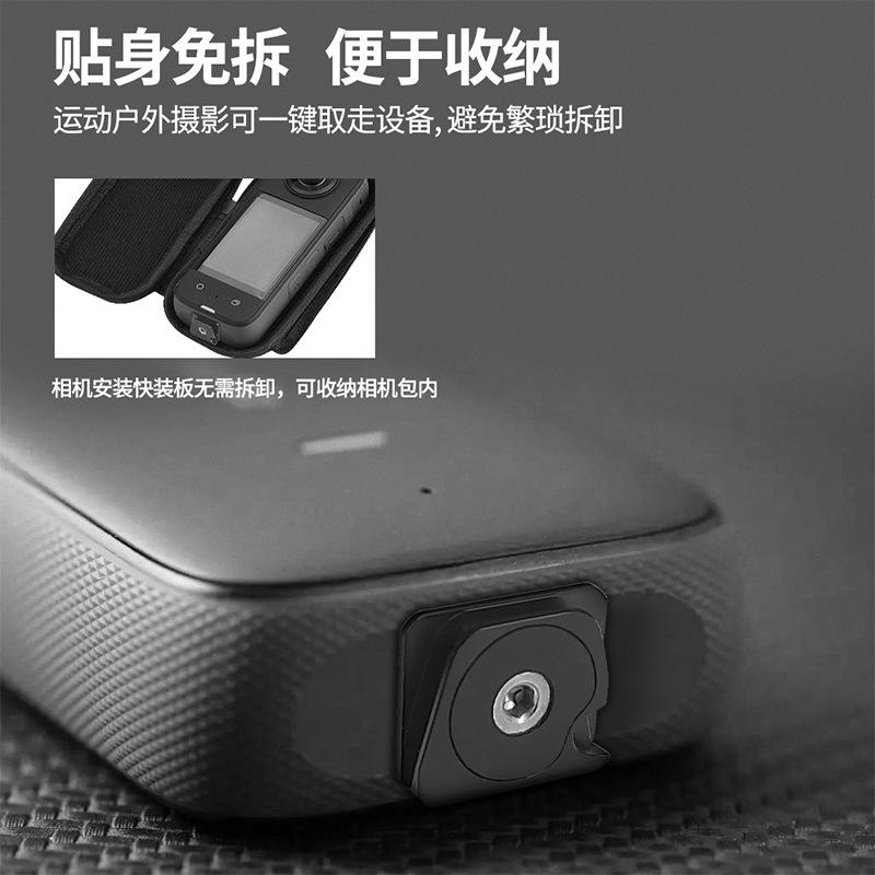 标题:新款全景相机迷你快装座 运动相机快拆座 1/4转1/4摄影转接配件 侧按开关无遮挡 适用于带1/4螺孔的各类全景相机影石instax360 X4/3/2等 运动相机GOPRO13/12 大疆action5PRO/4/3等设备配件