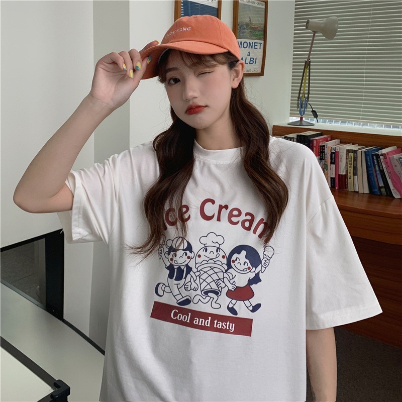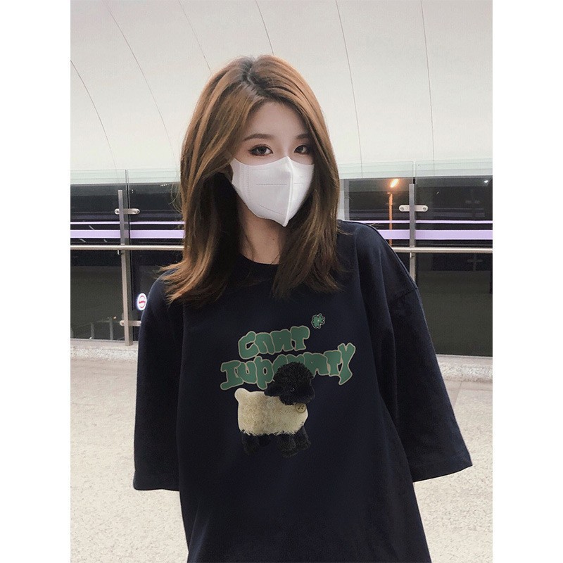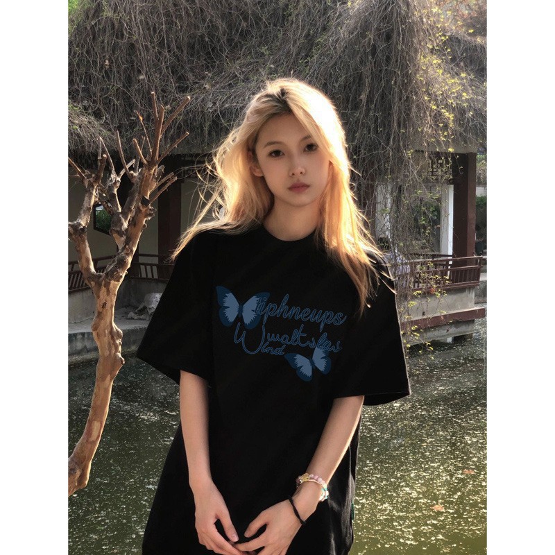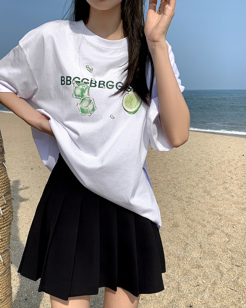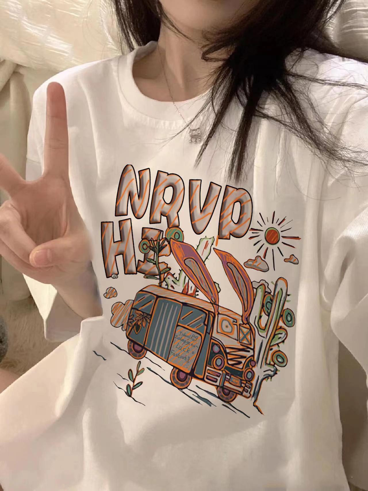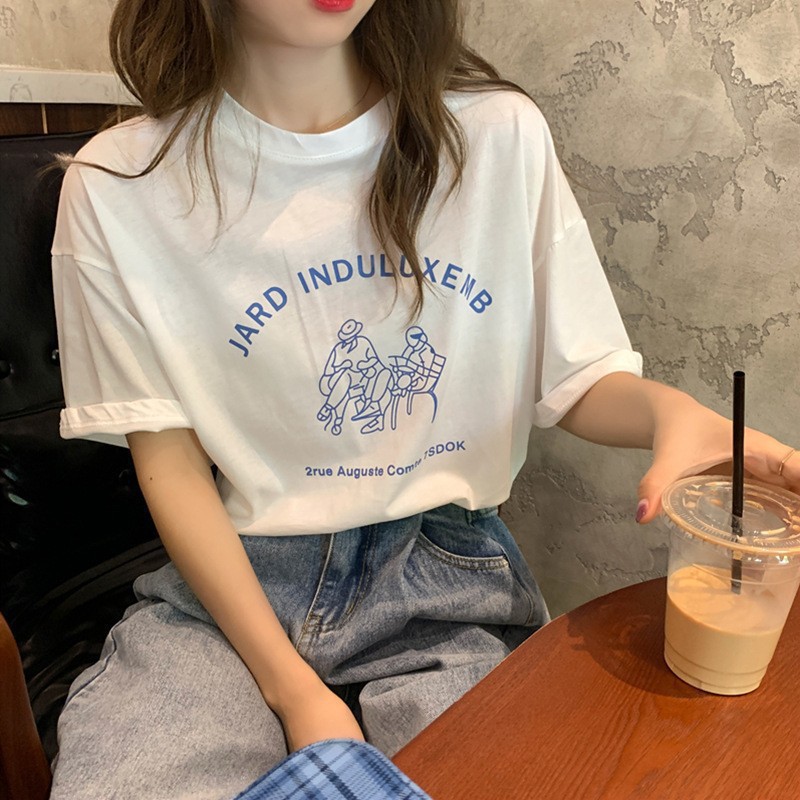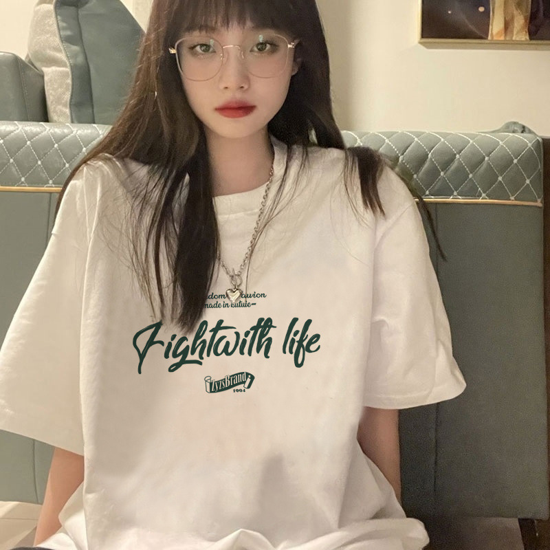 여성용 반팔 티셔츠 루즈한 한국식 하라주쿠 스타일 뉴 레터 프린트 학생 티셔츠 ins 여성 패션 트렌디 청소년스토어 가기