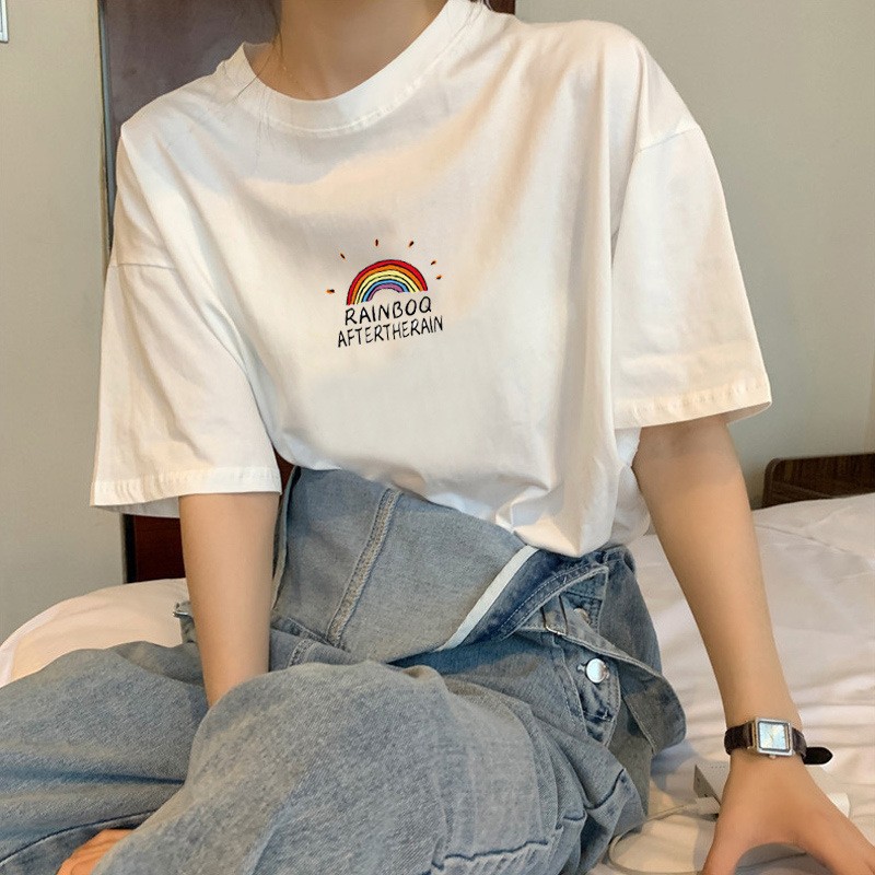 여성용 반팔 티셔츠 루즈한 한국식 하라주쿠 스타일 뉴 레터 프린트 학생 티셔츠 ins 여성 패션 트렌디 청소년