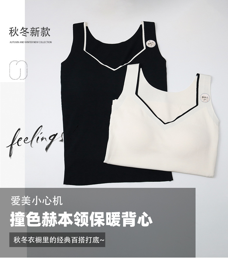 대조적 인 프랑스 헵번 칼라 여자 따뜻한 조끼 요코 고정 컵 소프트 왁스 편안한 추적없는 내부 슬링 여자스토어 가기
