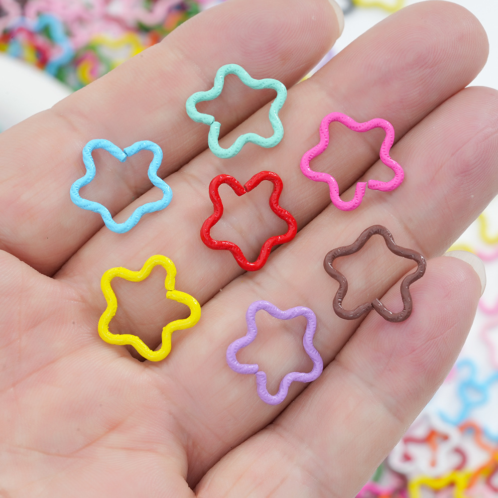 페인트 다섯개 별 양각 오픈 링 싱글 링 스프링 버클 개 체인 키 체인 연결 링 DIY 쥬얼리 액세서리