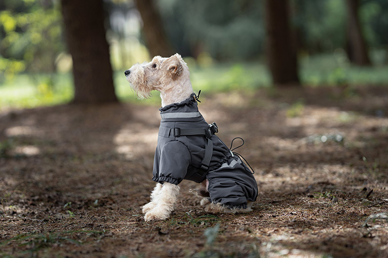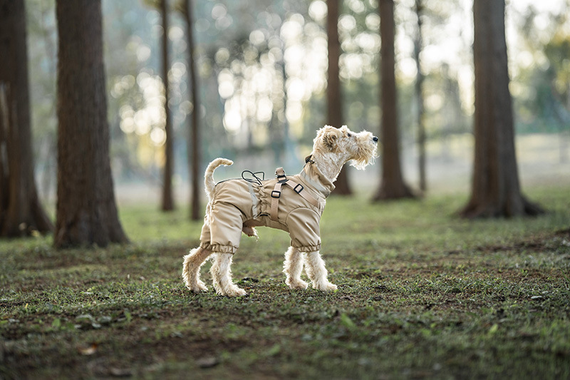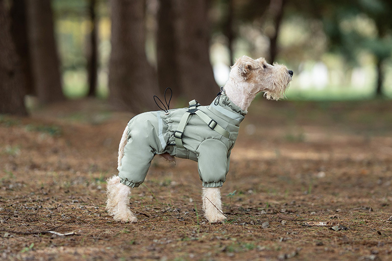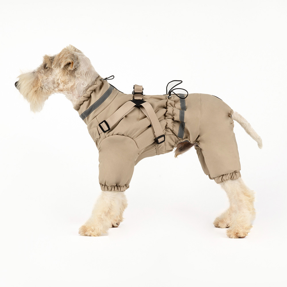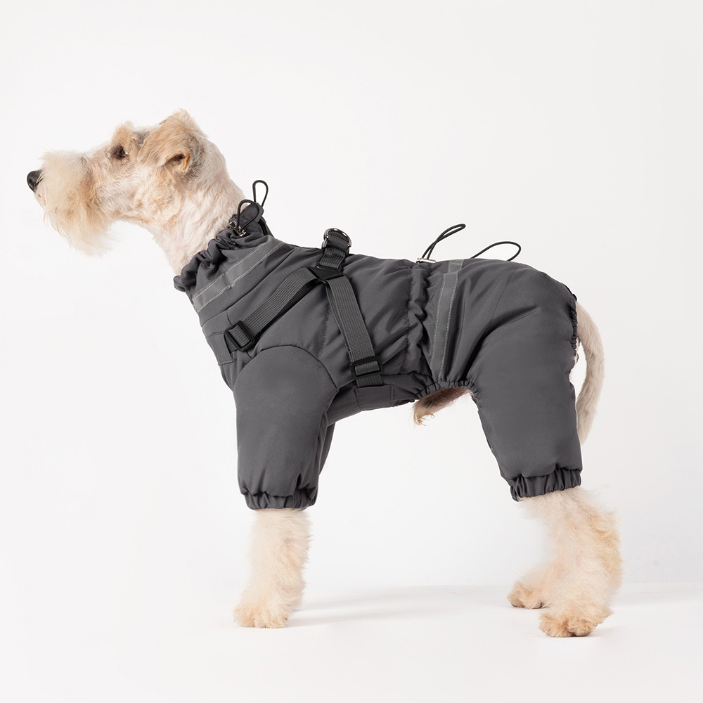 애완 동물 네 다리 면화 코트 겨울 따뜻한 개 네 다리 옷 두꺼운 가슴과 등 통합 견인 테디 슈너리