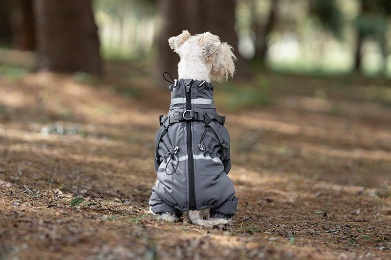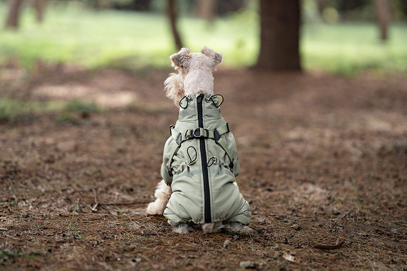 애완 동물 네 다리 면화 코트 겨울 따뜻한 개 네 다리 옷 두꺼운 가슴과 등 통합 견인 테디 슈너리스토어 가기