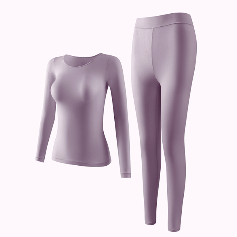 보라색 빠른 손 폭발 피부 아름다움 옷 추적없는 울트라 얇은 긴 소매 내부 기본 탑 따뜻한 가을 옷 긴 바지 속옷 여성용