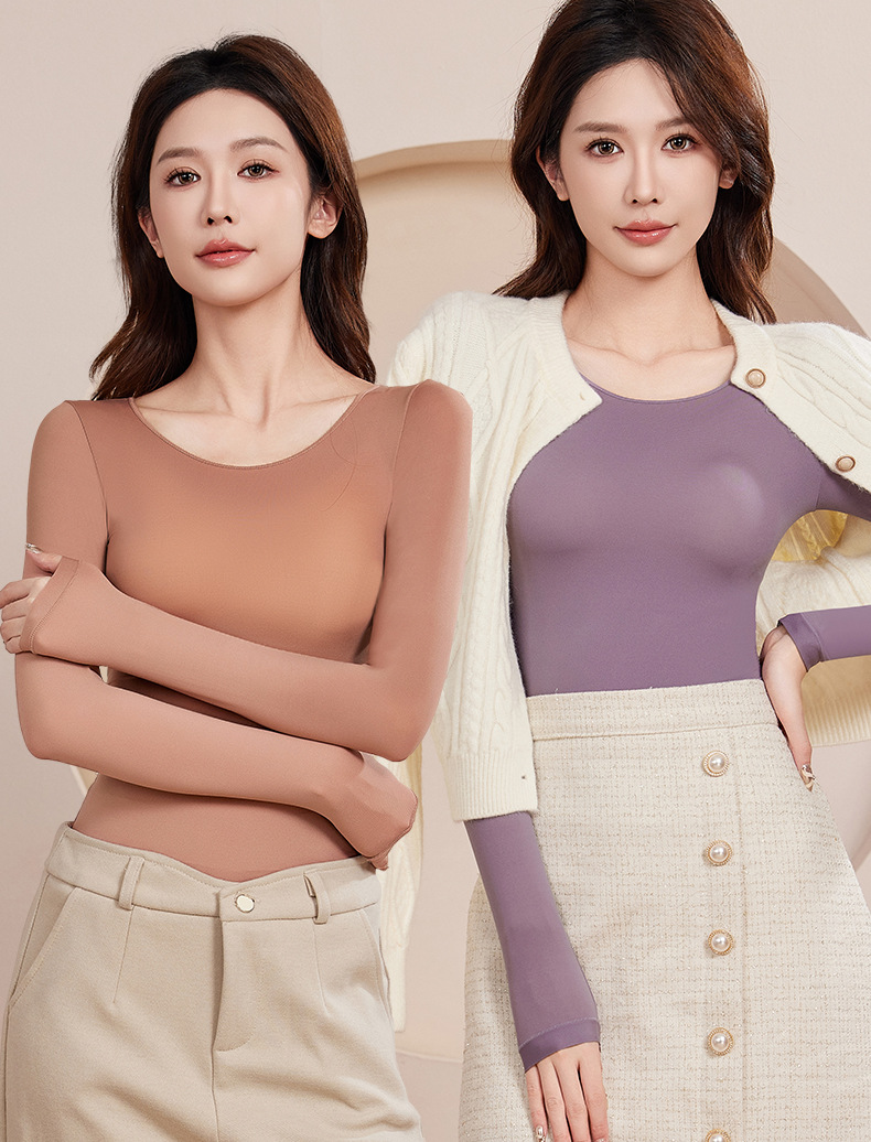 보라색 빠른 손 폭발 피부 아름다움 옷 추적없는 울트라 얇은 긴 소매 내부 기본 탑 따뜻한 가을 옷 긴 바지 속옷 여성용스토어 가기