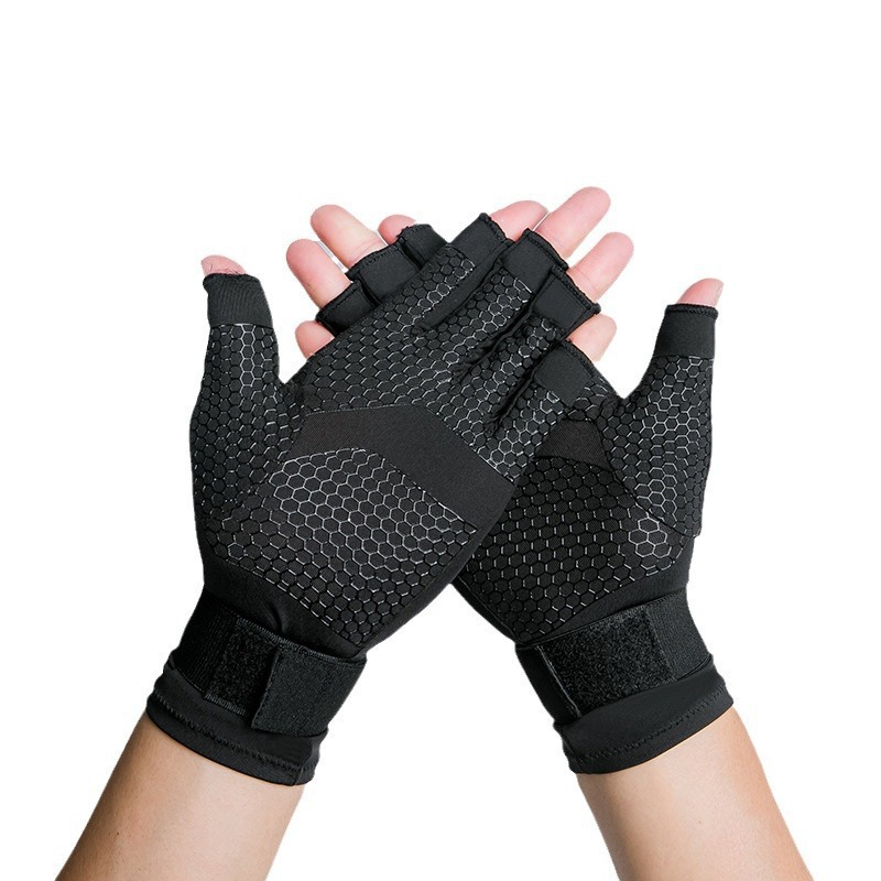 국경 간 뜨거운 판매 구리 섬유 반 손가락 장갑 건강 관리 손목 밴드 장갑 합동 훈련 반 손가락 압력 장갑