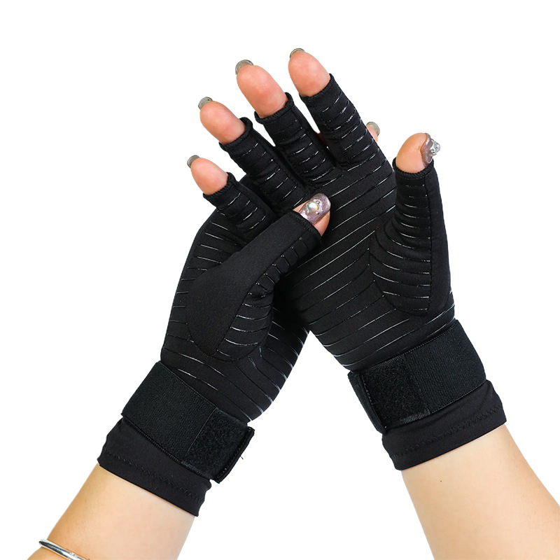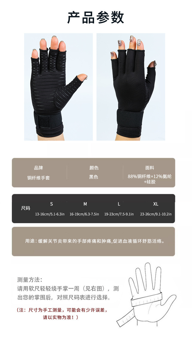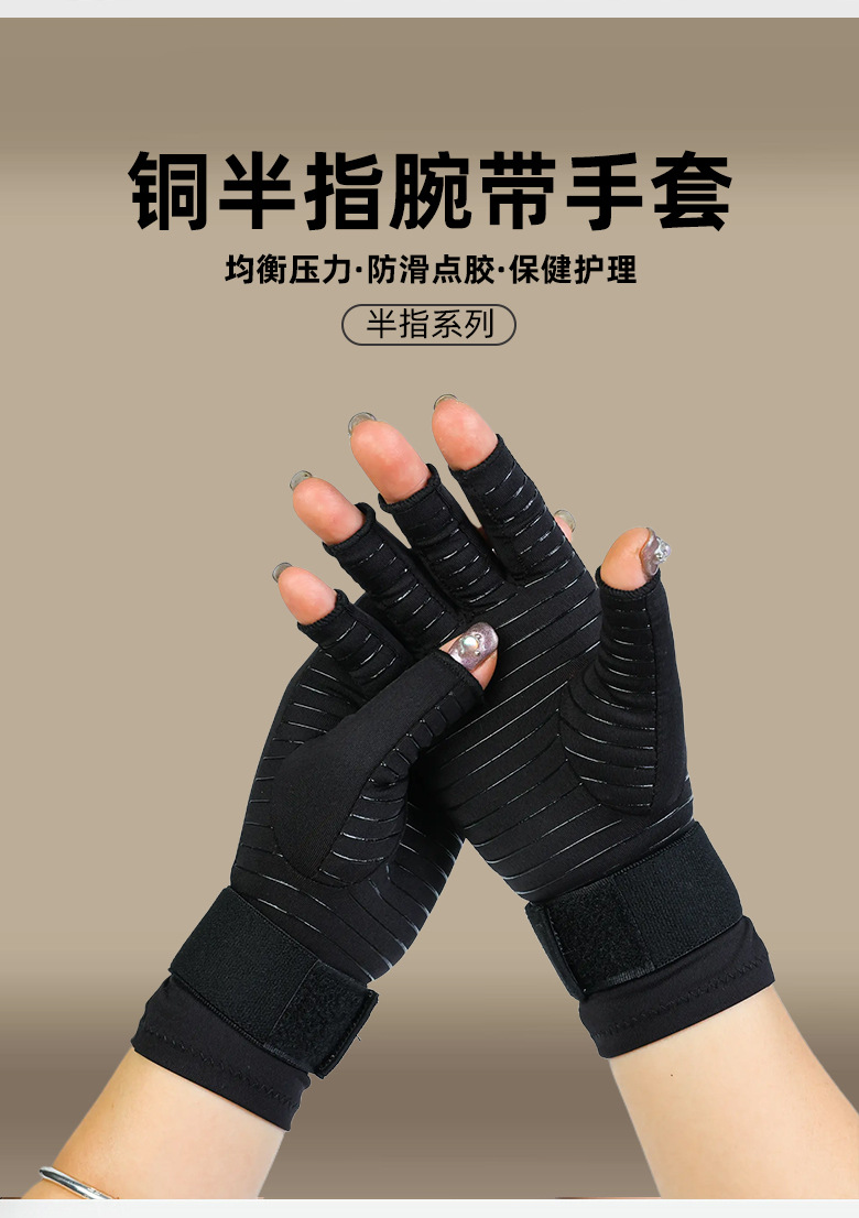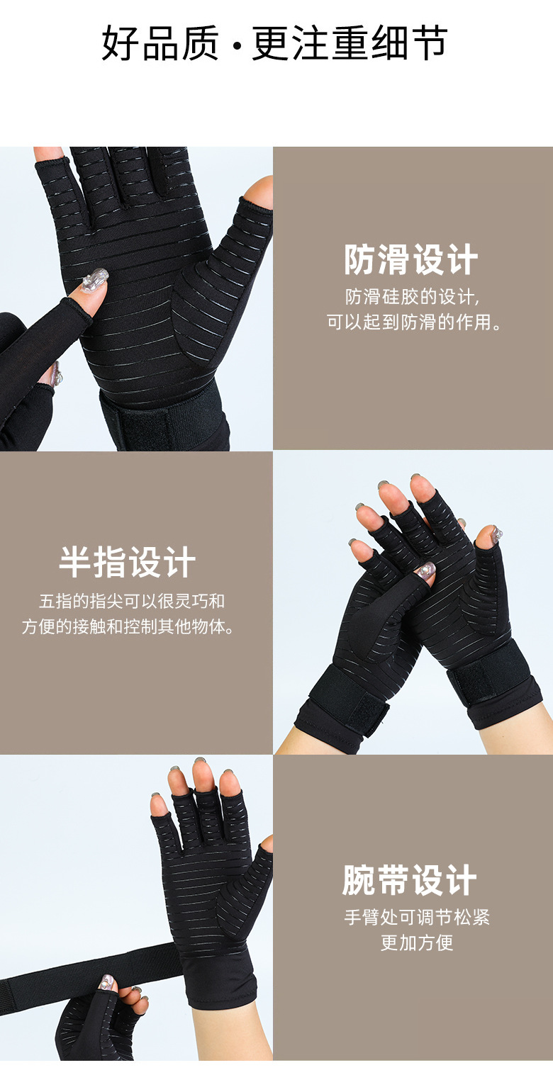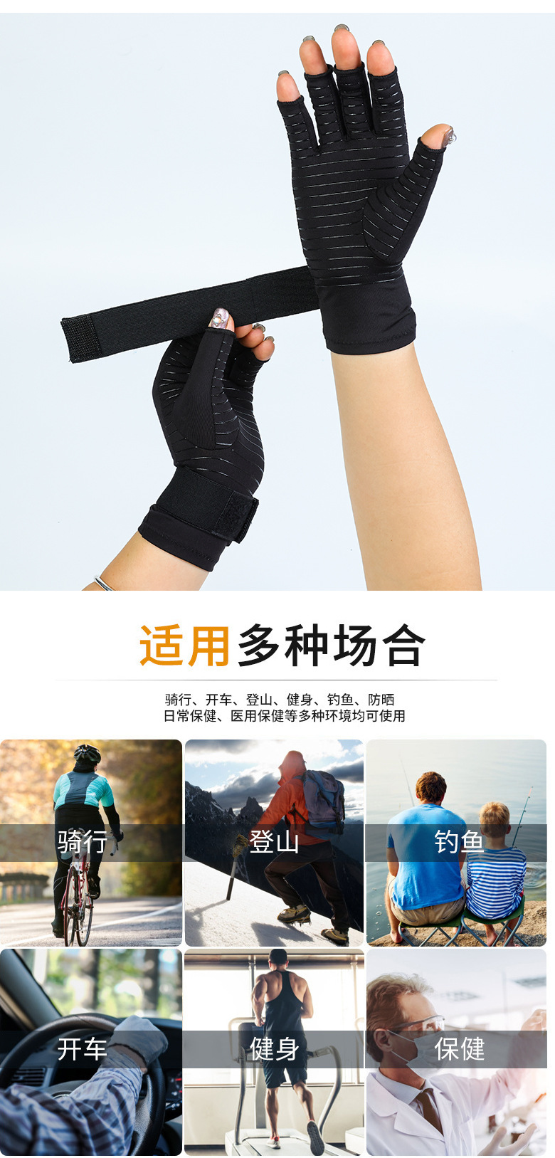 국경 간 뜨거운 판매 구리 섬유 반 손가락 장갑 건강 관리 손목 밴드 장갑 합동 훈련 반 손가락 압력 장갑스토어 가기