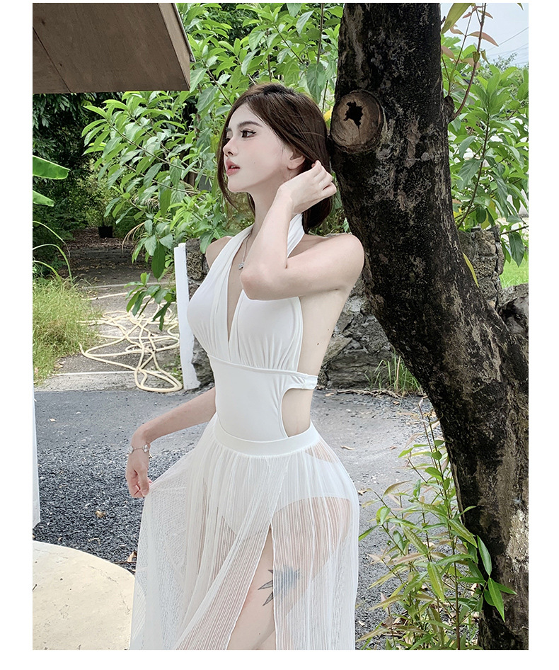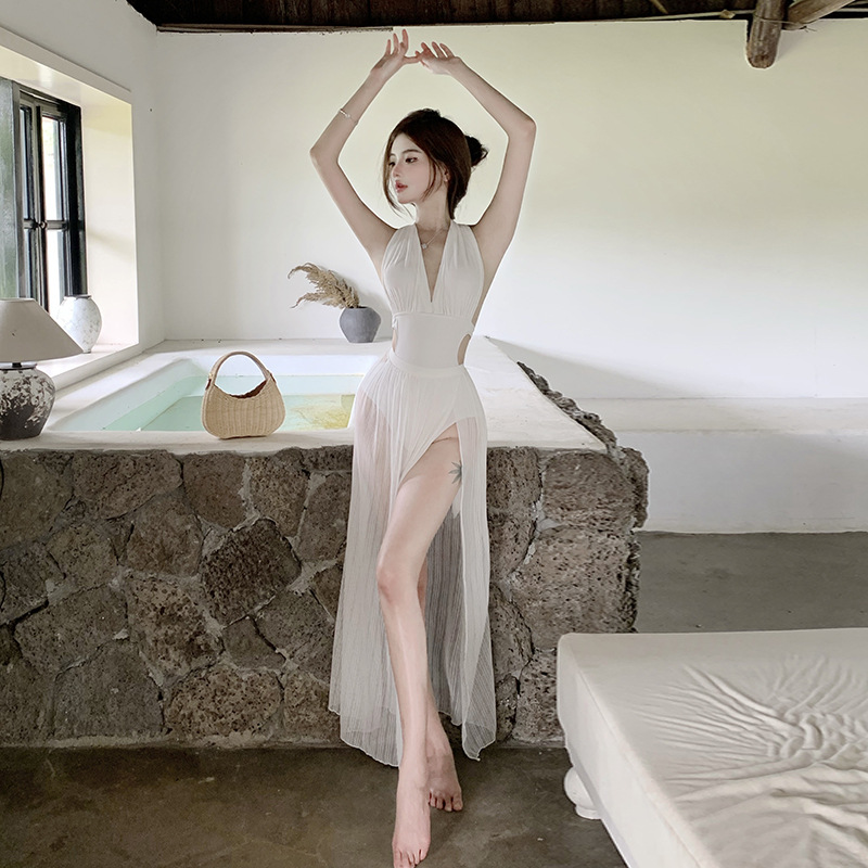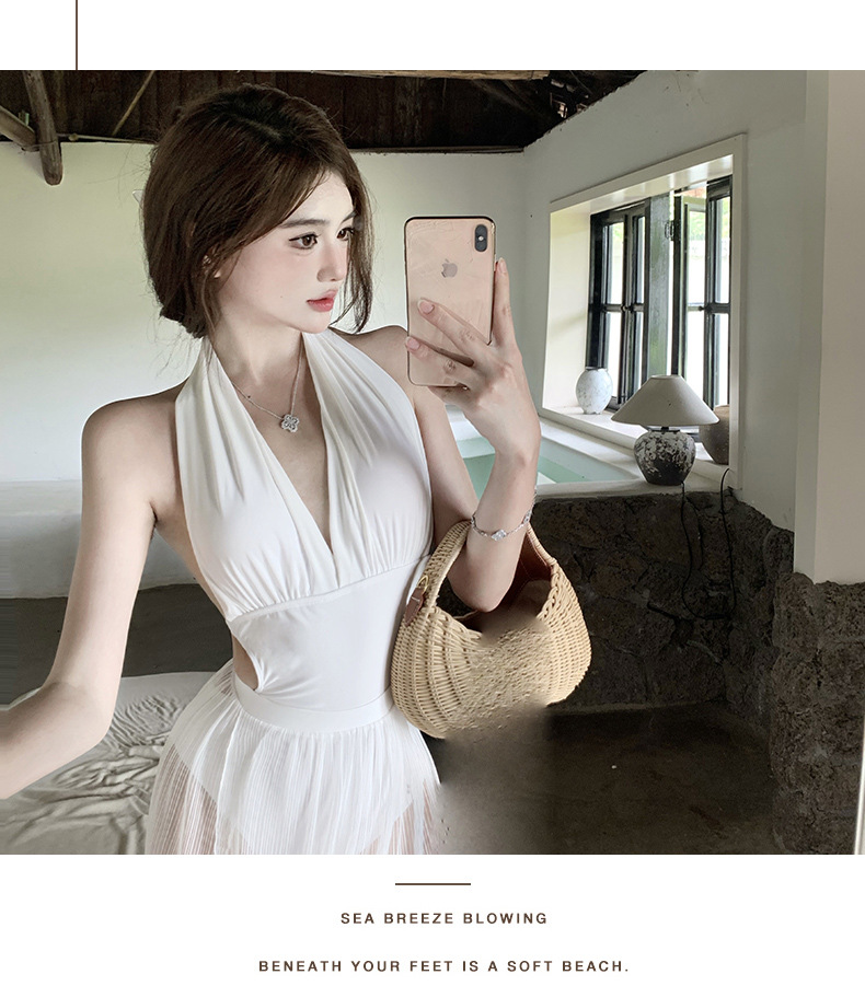 수영복 여성 2025 년 새 섹시 넥 원피스 스커트 육체 커버 슬리밍 나비 인쇄 일본과 한국 스타일 온천 수영복스토어 가기