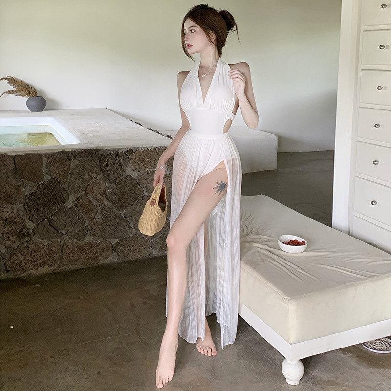 수영복 여성 2025 년 새 섹시 넥 원피스 스커트 육체 커버 슬리밍 나비 인쇄 일본과 한국 스타일 온천 수영복