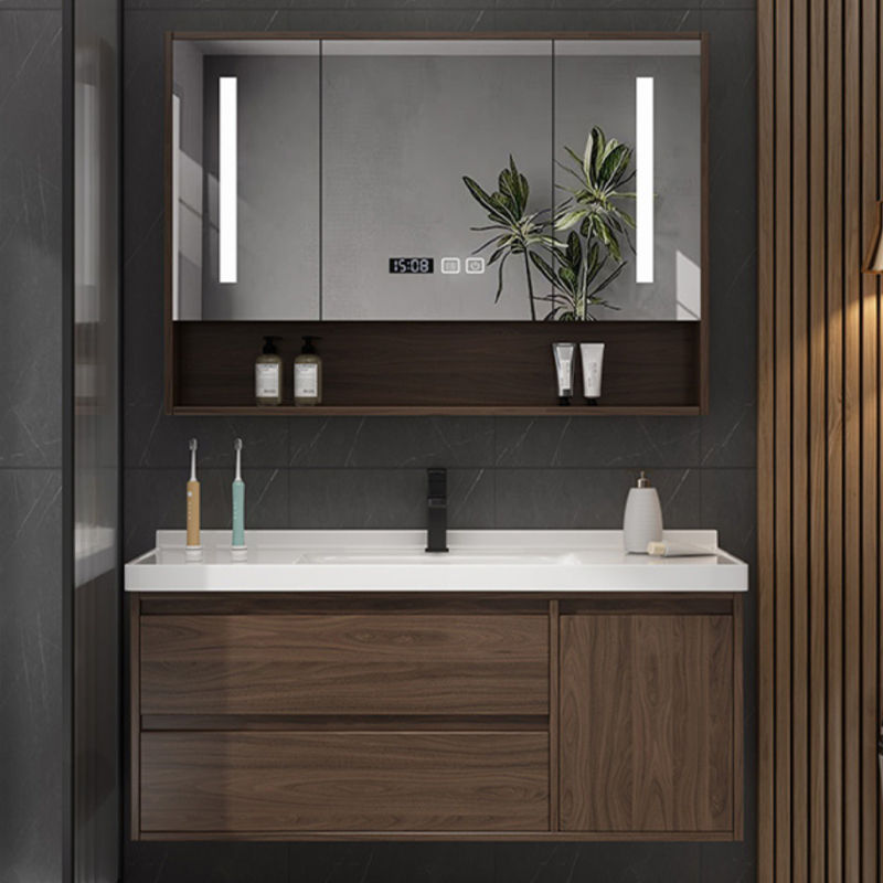 • 마호가니 컬러/스마트거울장-벽수납장-100CM+세라믹 일체형 세면대/다층 원목