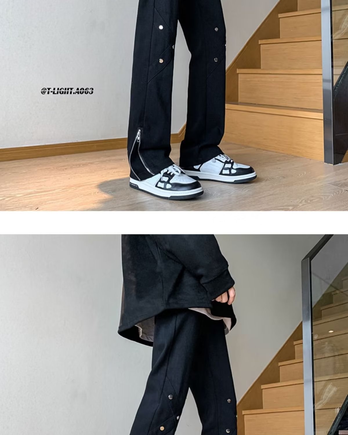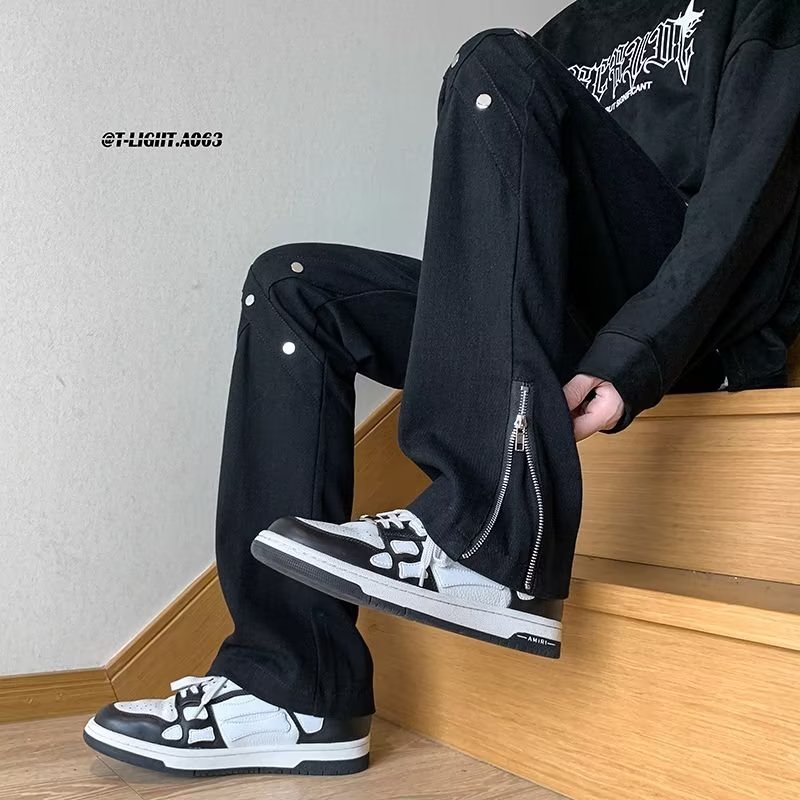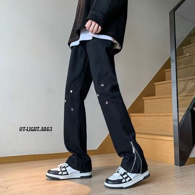 미국식 힙합 마이크로 청바지 남성용 지퍼 슬림 핏 오버 사이즈 바지 학생 하이 스트리트 분위기 패션 브랜드스토어 가기