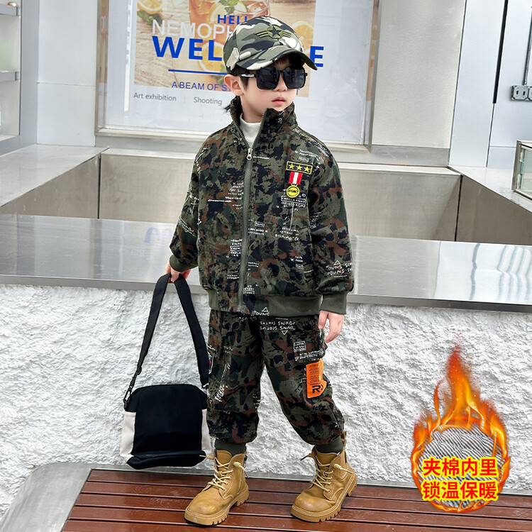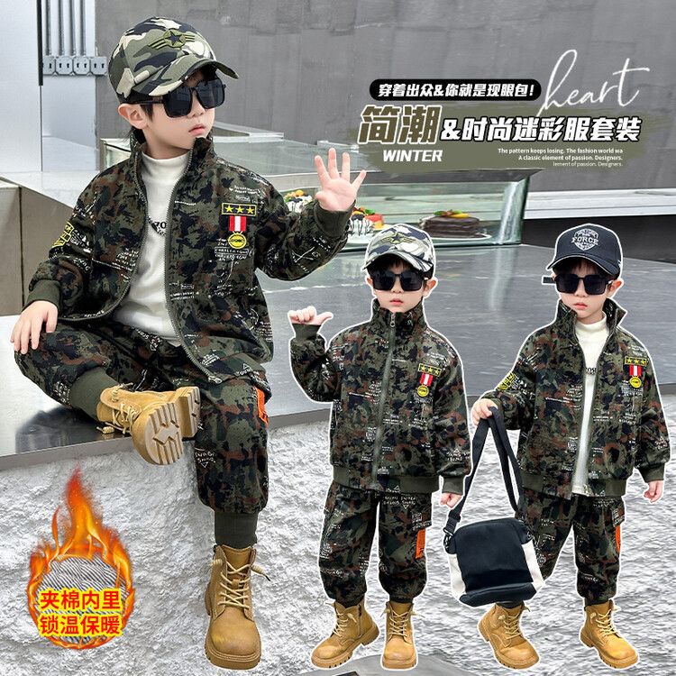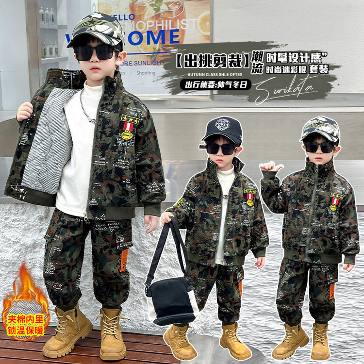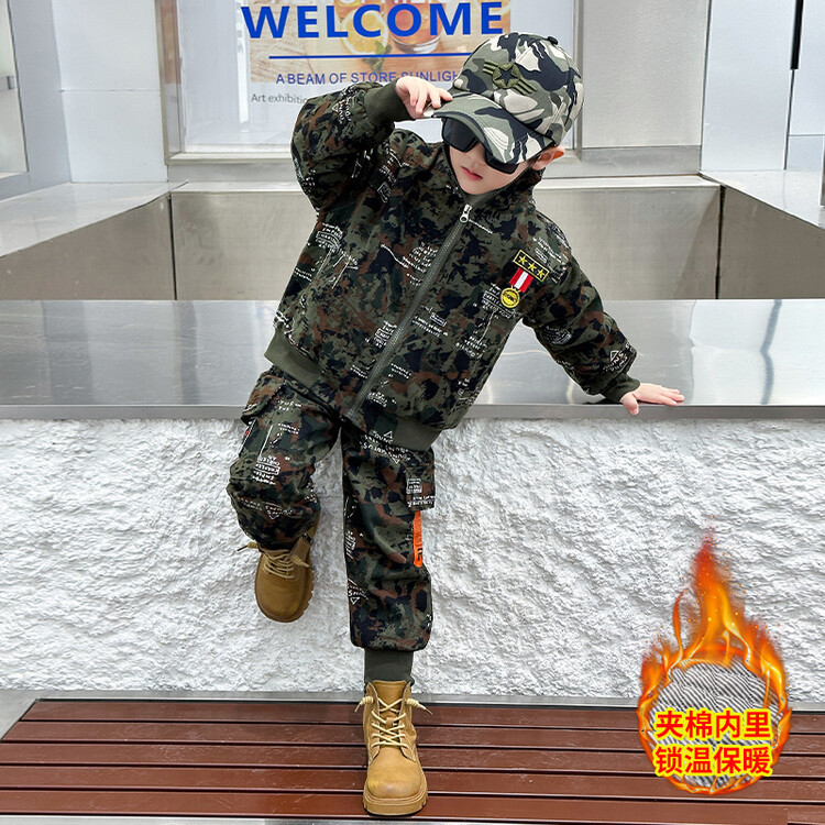 어린이 위장 의류 기모 코튼 보이 군사 세트 가을 및 겨울 특수 부대 겨울 두꺼운 작업복 경찰 의류스토어 가기
