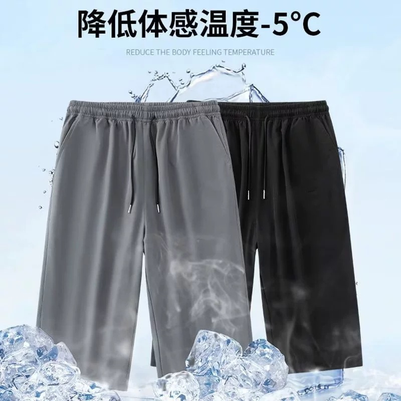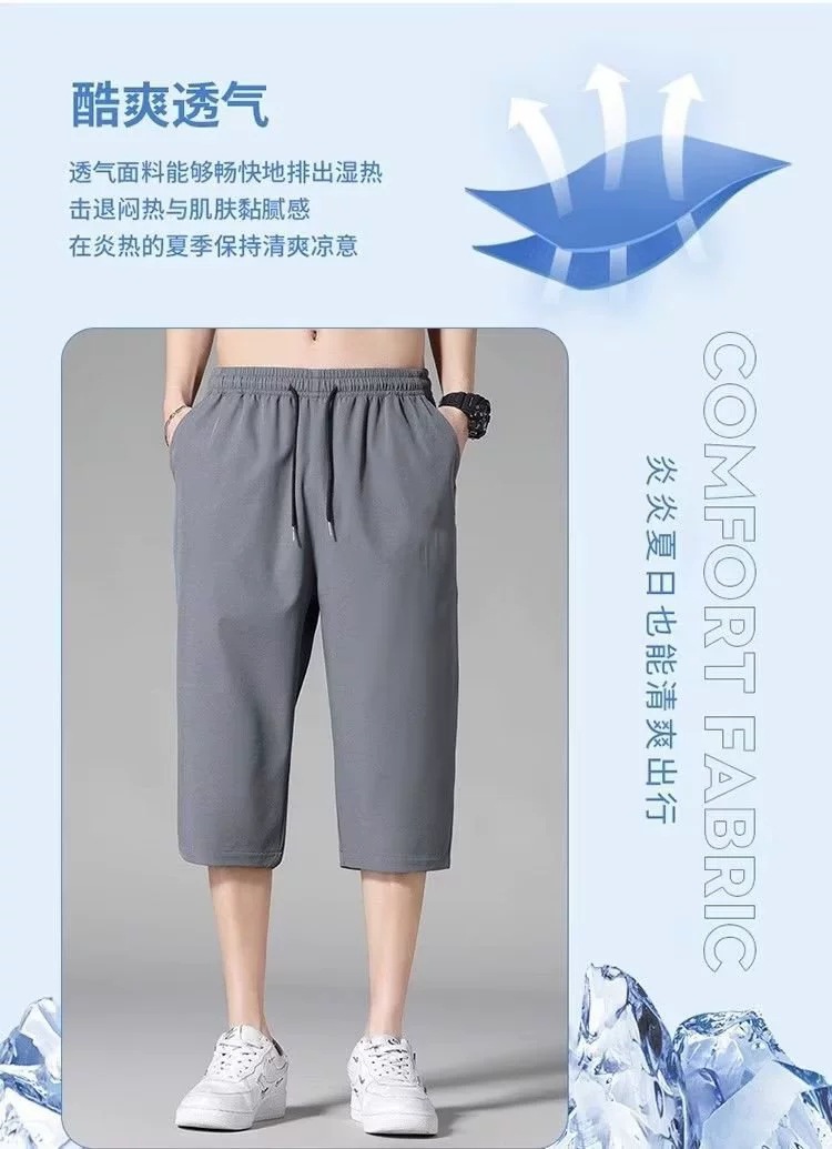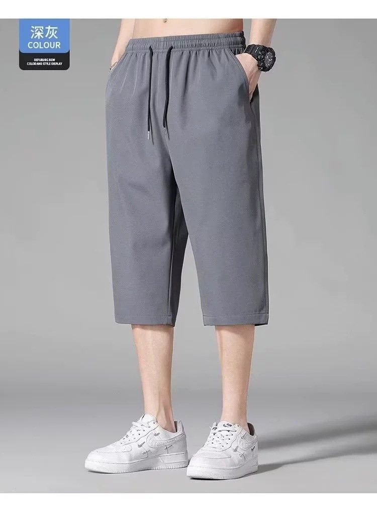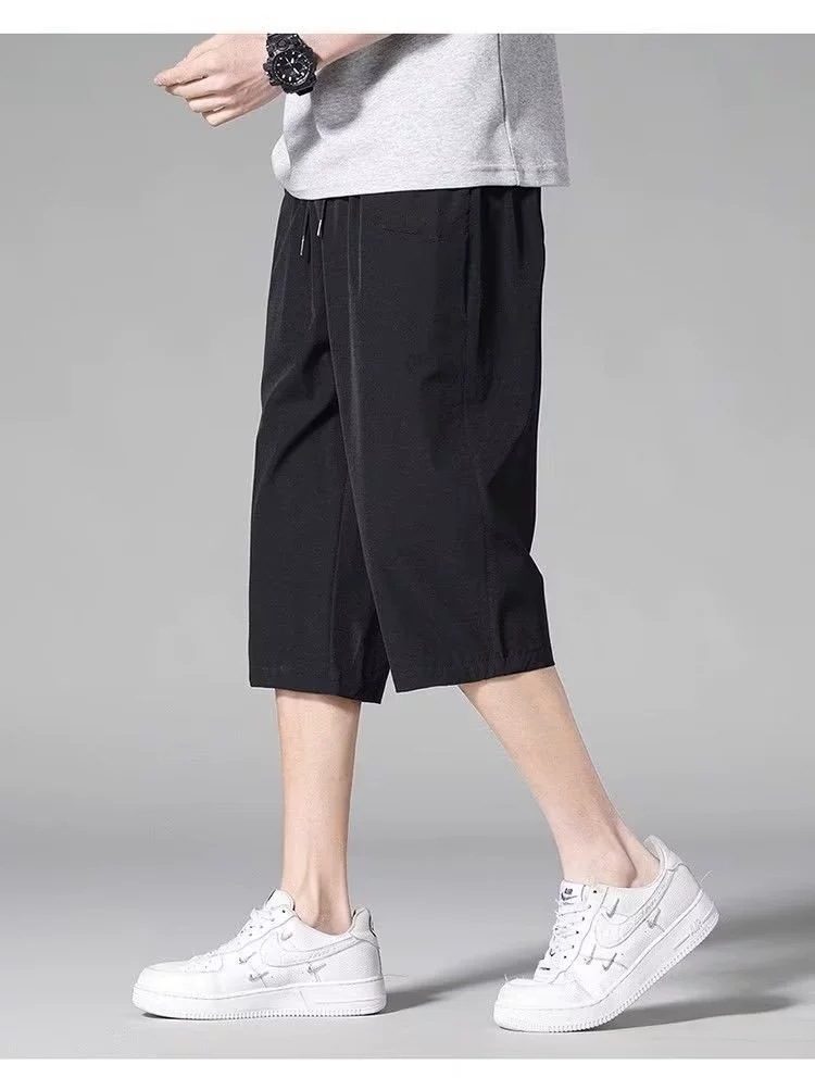 아이스 실크 자른 바지 남성용 여름 얇은 느슨한 캐주얼 바지 유행 브랜드 통기성 빠른 건조 바지 스포츠 반바지