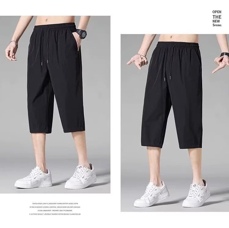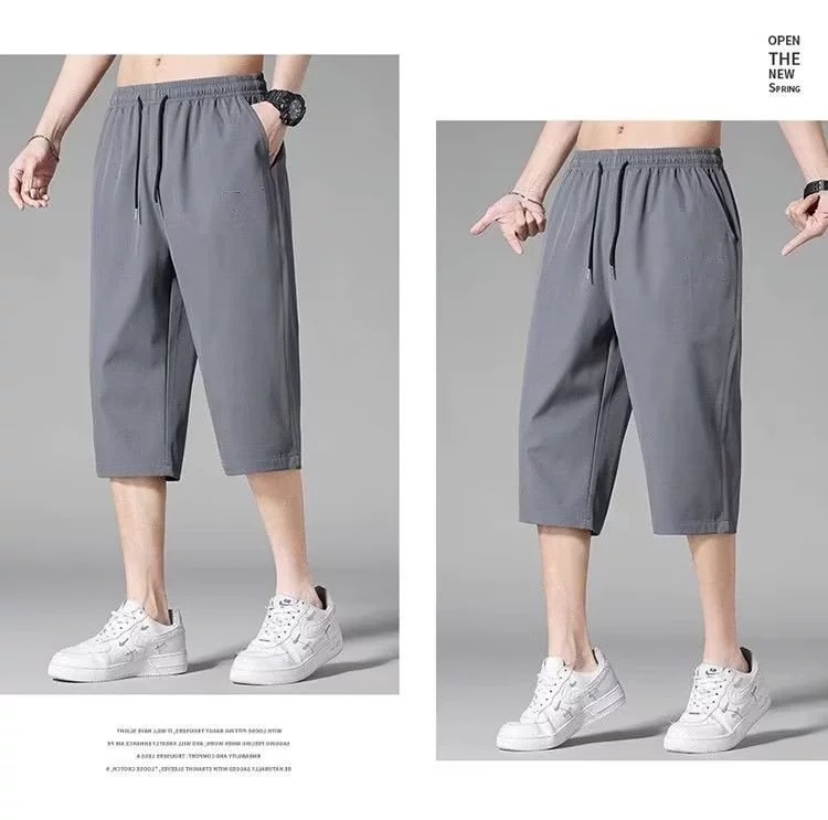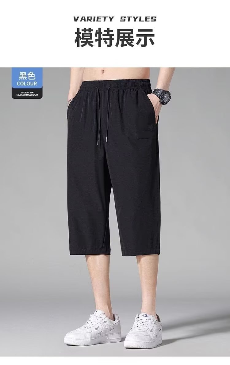 아이스 실크 자른 바지 남성용 여름 얇은 느슨한 캐주얼 바지 유행 브랜드 통기성 빠른 건조 바지 스포츠 반바지스토어 가기