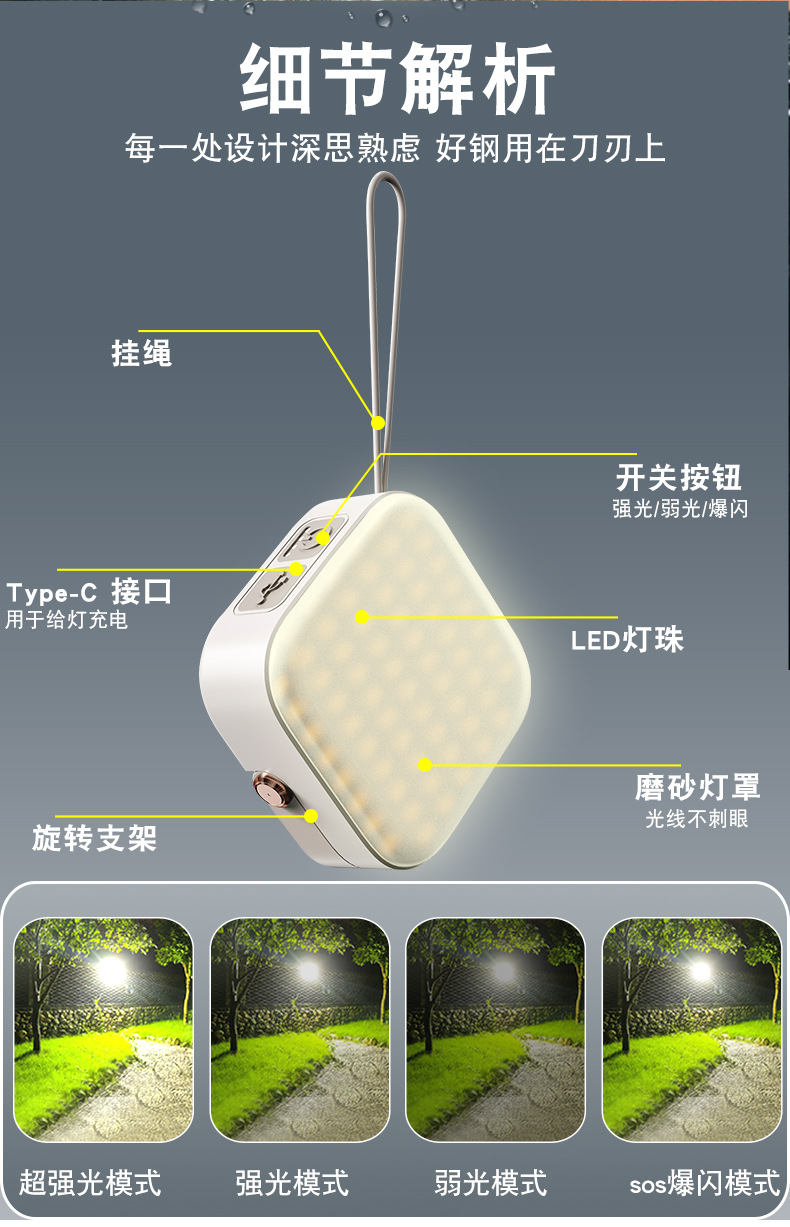 캠핑 조명, 매우 긴 배터리 수명, 따뜻한 노란색 빛, 야외 캠핑 캐노피 텐트, 휴대용 노점, 충전식 조명